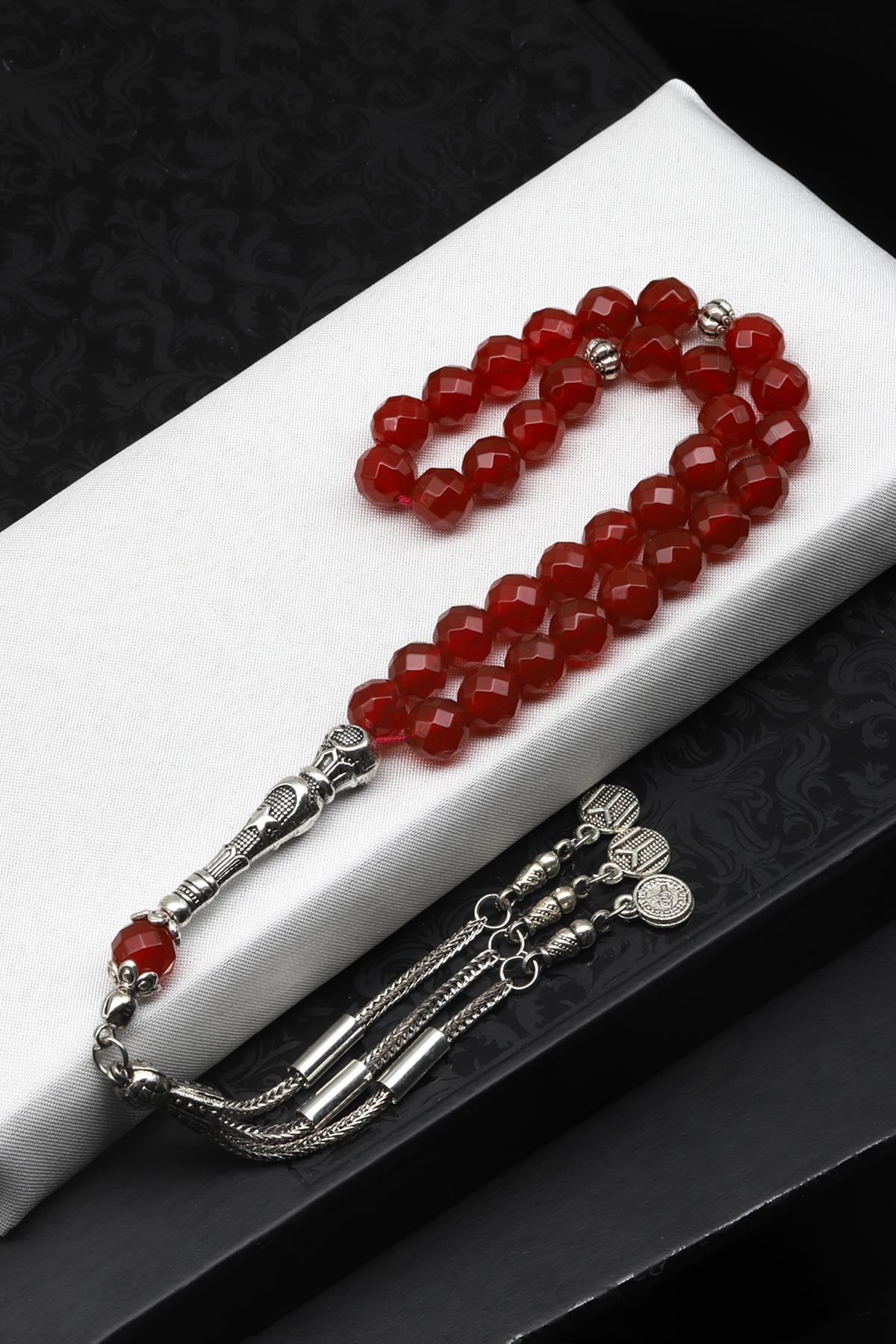 :  A Kalite Akik Doğal Taş Tesbih - 8 mm Fasetli Küre Kesim