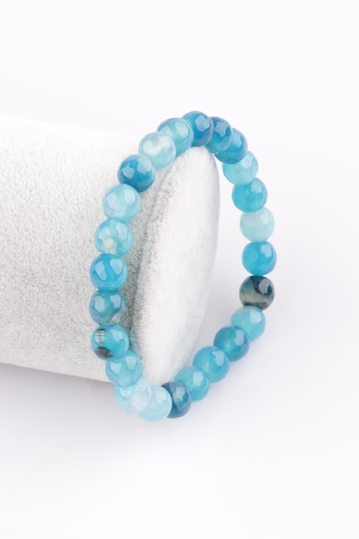 Akik Doğal Taş Bileklik 8 mm Fasetli Küre Kesim