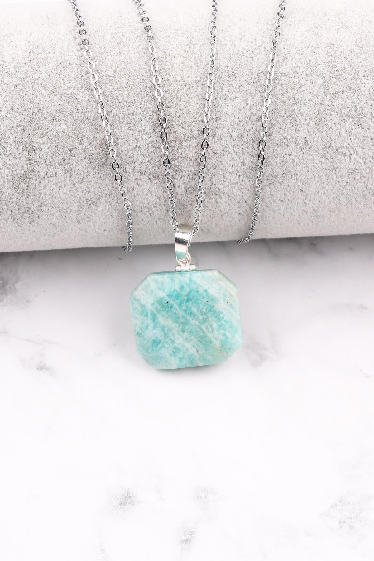 Amazonit Doğal Taş KolyeAĞIRLIK – 9 grGENİŞLİK – 2,4 cmUZUNLUK – 2,1 cmZincir Modeli Stok Durumuna Göre Değişkenlik Gösterebilir, Ortalama Zincir Uzunluğu 45 cm’dir.Ürün Fotoğrafı Temsili Fotoğraftır, Ürünümüz Doğal Taş Olduğundan Renklerinde, Ağırlıklarında ve Boyutlarında Farklılıklar Gösterebilir.