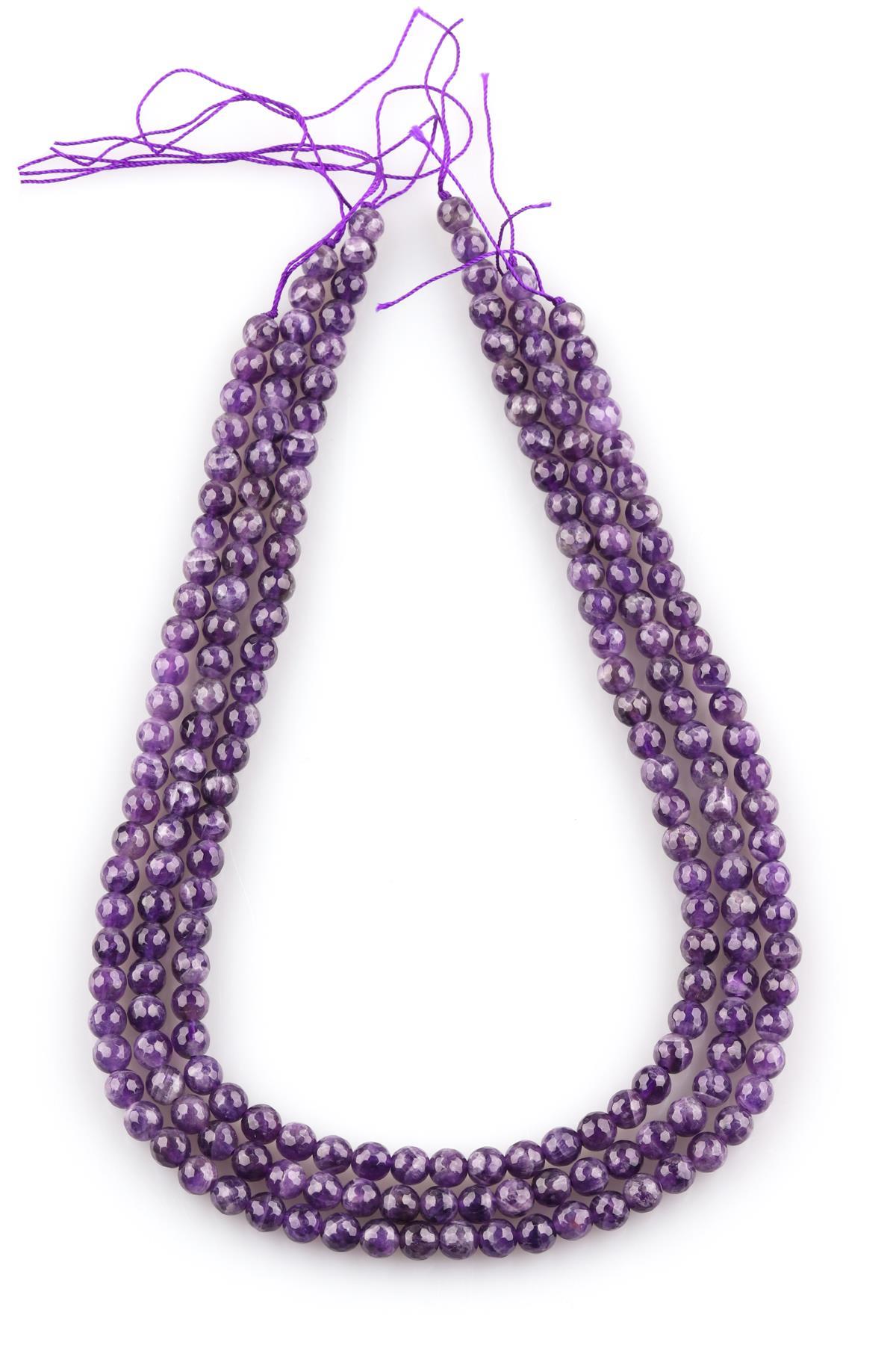 Ametist Doğal Taş Dizi 6 mm Fasetli Küre Kesim