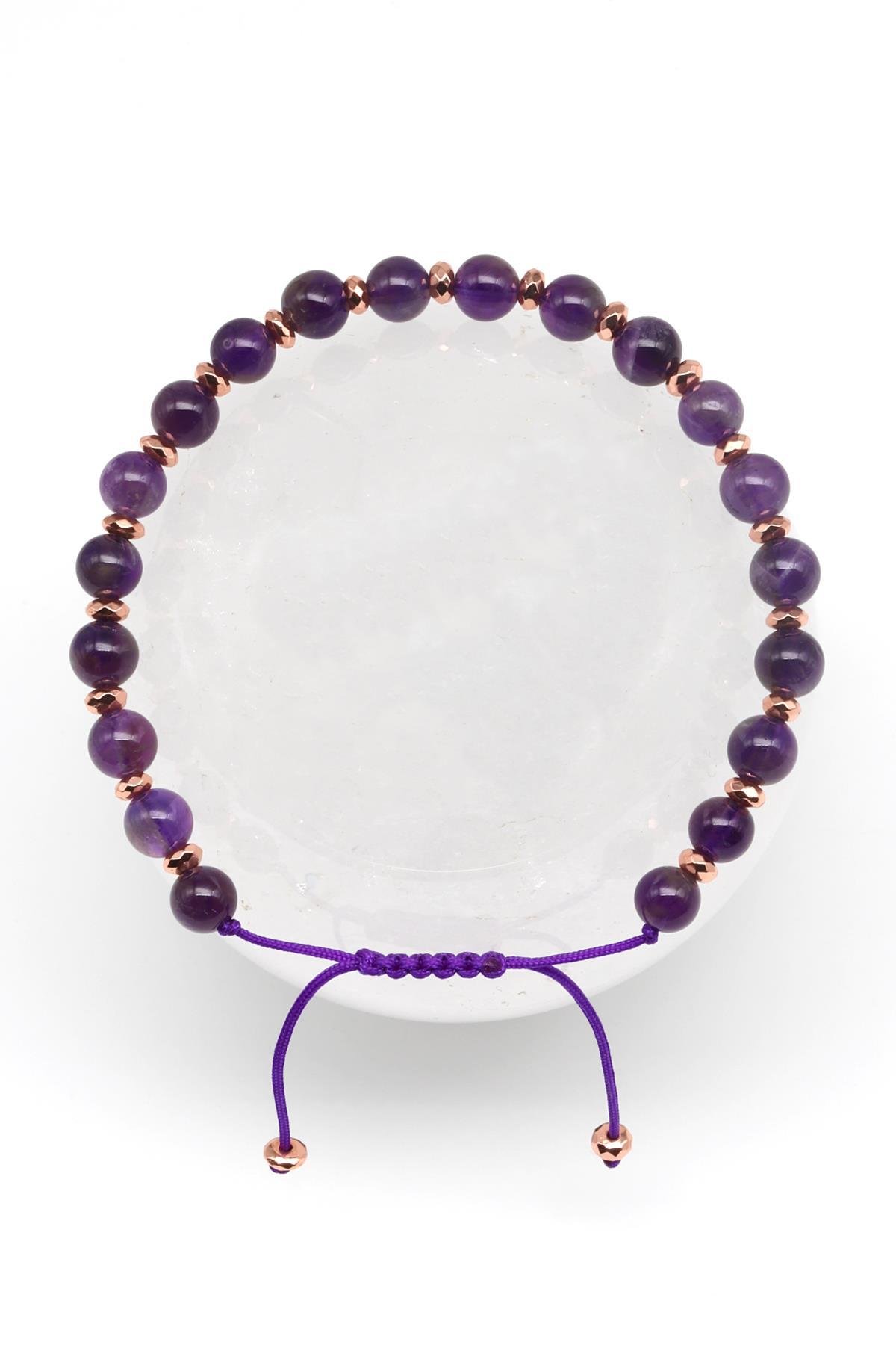 Ametist Doğal Taş Makrome Örme Bileklik Küre Kesim (BMK-466)