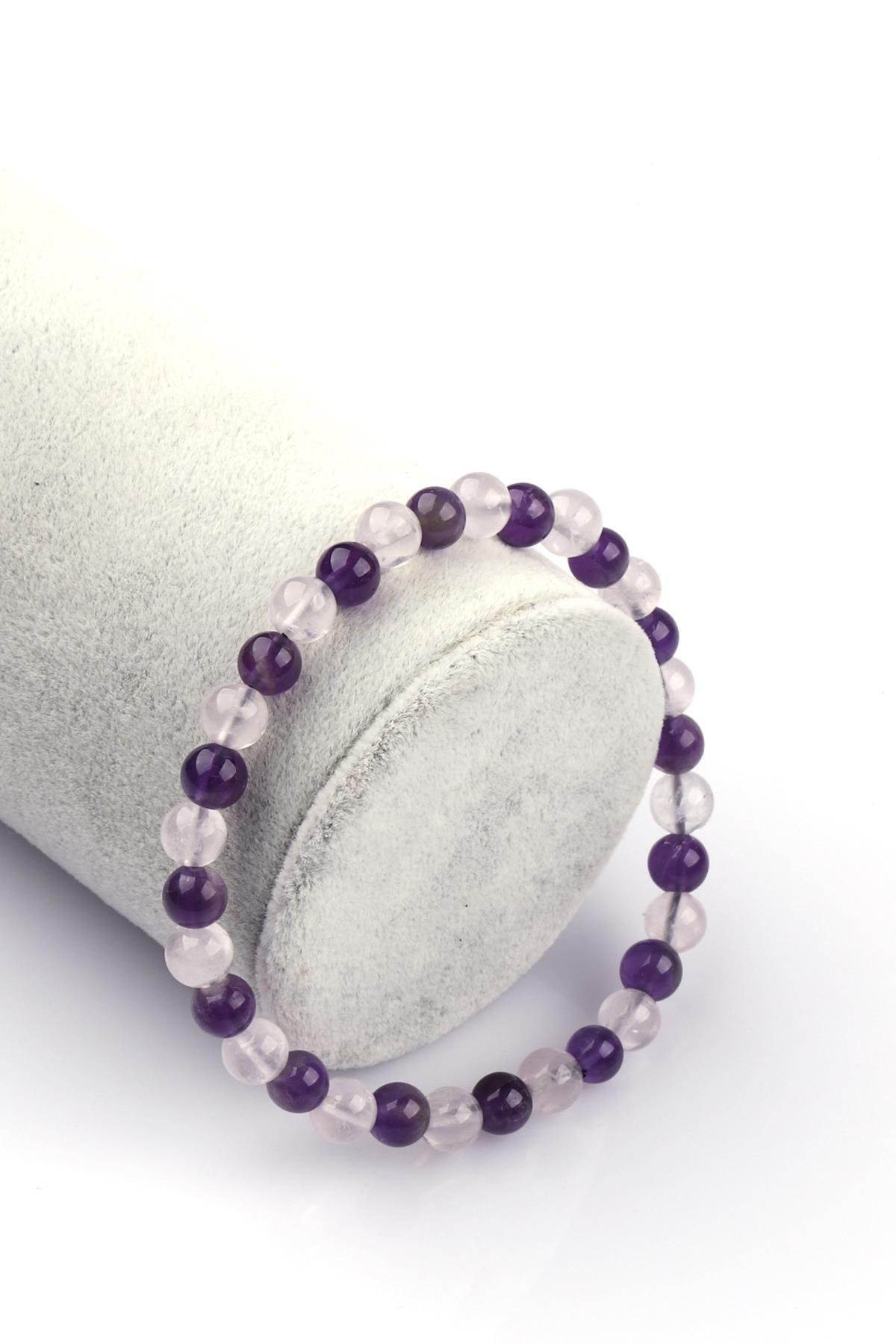 Ametist - Pembe Kuvars Doğal Taş Bileklik 6 mm Küre Kesim