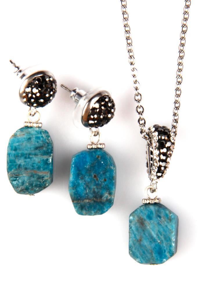 Apatit Doğal Taş Kolye – Küpe SetAĞIRLIK – 12 grGENİŞLİK – 1,3 cmYÜKSEKLİK – 2 cm
