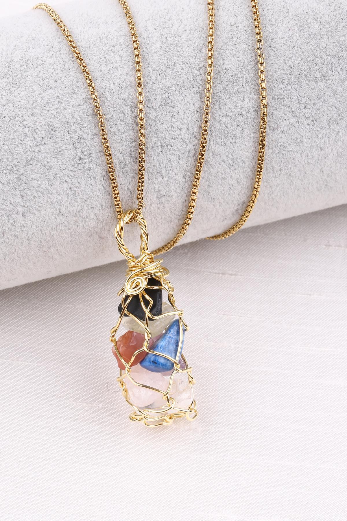 Çakra Doğal Taş Tel Sarmalı Kolye