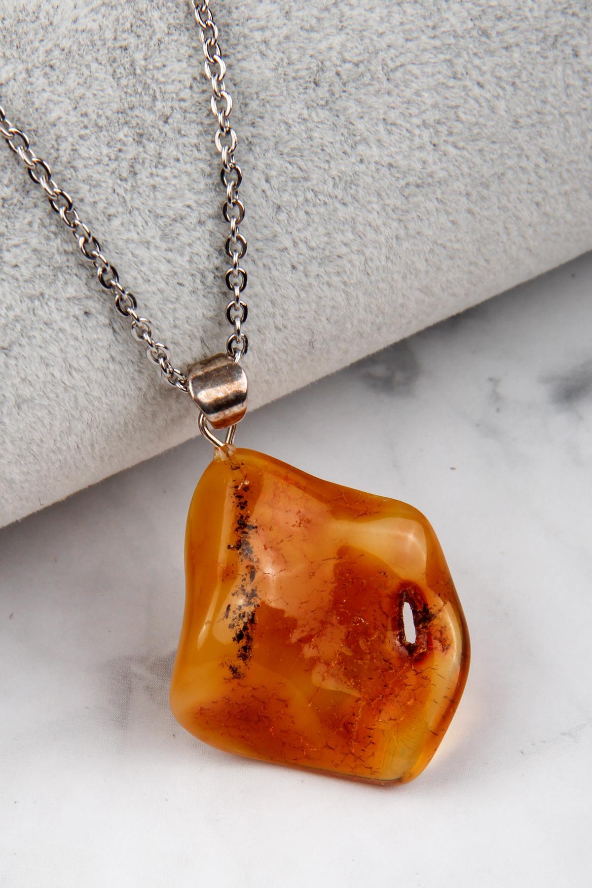 Damla Kehribar 925 Ayar Gümüş KolyeAĞIRLIK – 3,7 grGENİŞLİK – 3 cmUZUNLUK – 3,8 cmZincir Modeli Stok Durumuna Göre Değişebilir, Ortalama 45 cm dir.