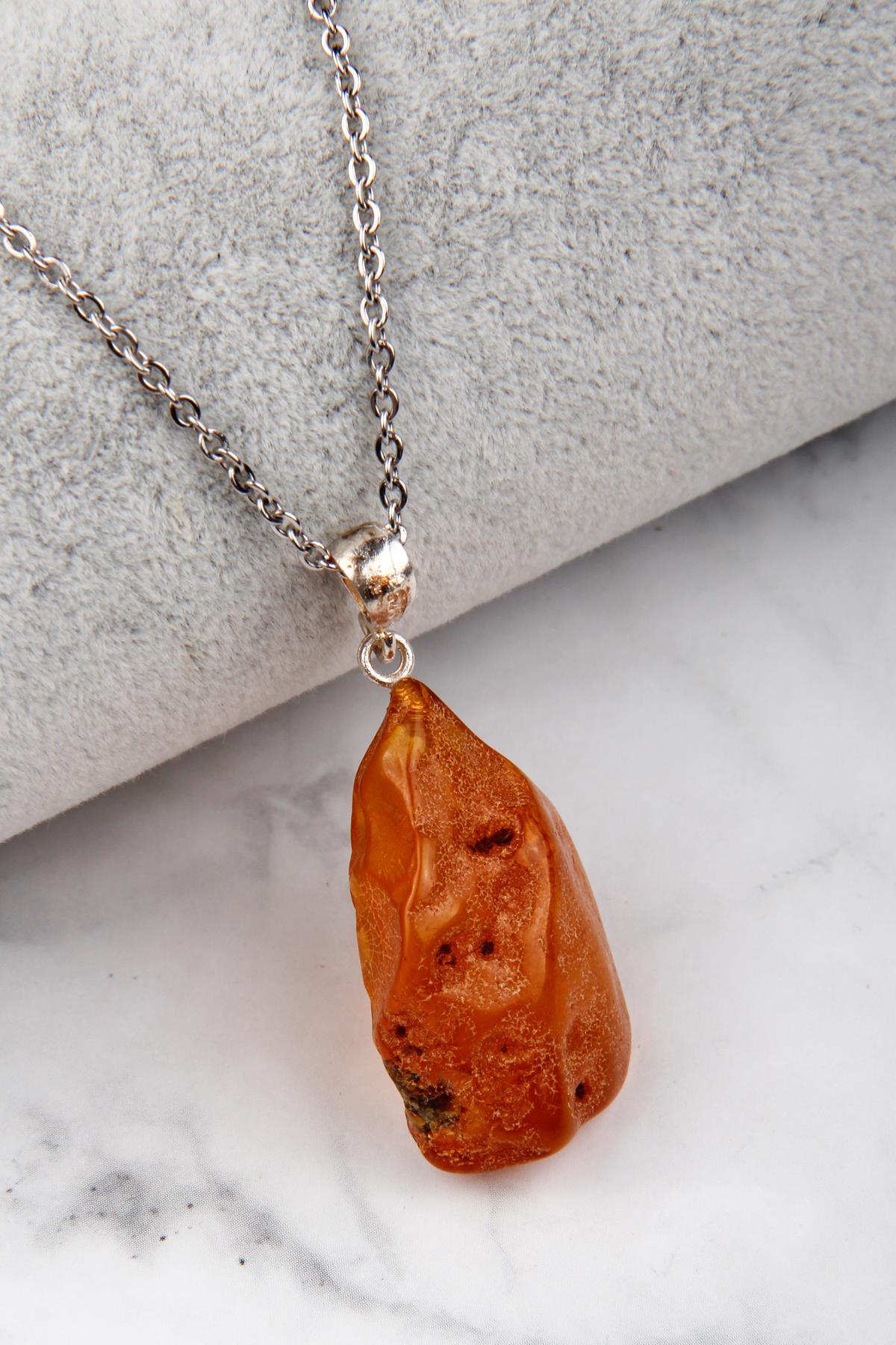 Damla Kehribar 925 Ayar Gümüş KolyeAĞIRLIK – 4,24 grGENİŞLİK – 2 cmUZUNLUK – 3,2 cmZincir Modeli Stok Durumuna Göre Değişebilir, Ortalama 45 cm dir.