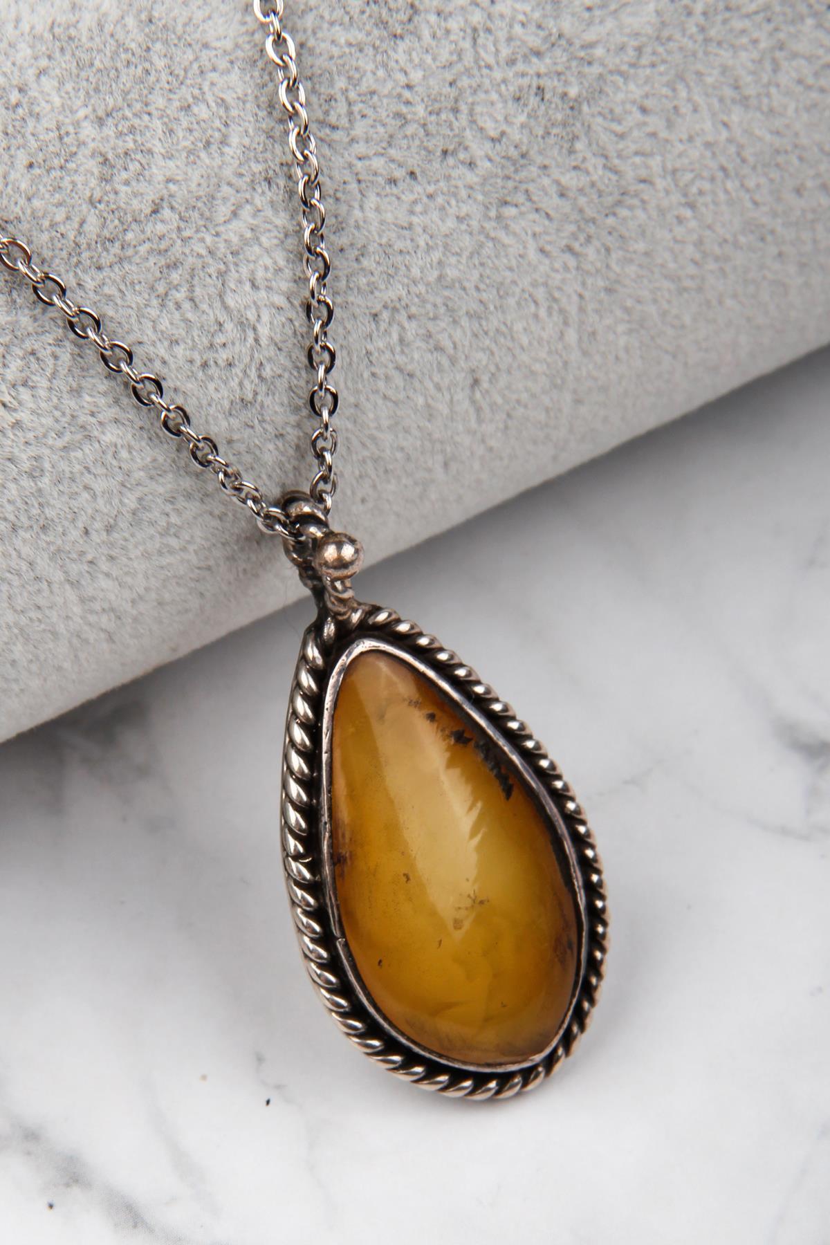 Damla Kehribar 925 Ayar Gümüş KolyeAĞIRLIK – 7,12 grGENİŞLİK – 2,7 cmUZUNLUK – 3,5 cmZincir Modeli Stok Durumuna Göre Değişebilir, Ortalama 45 cm dir.