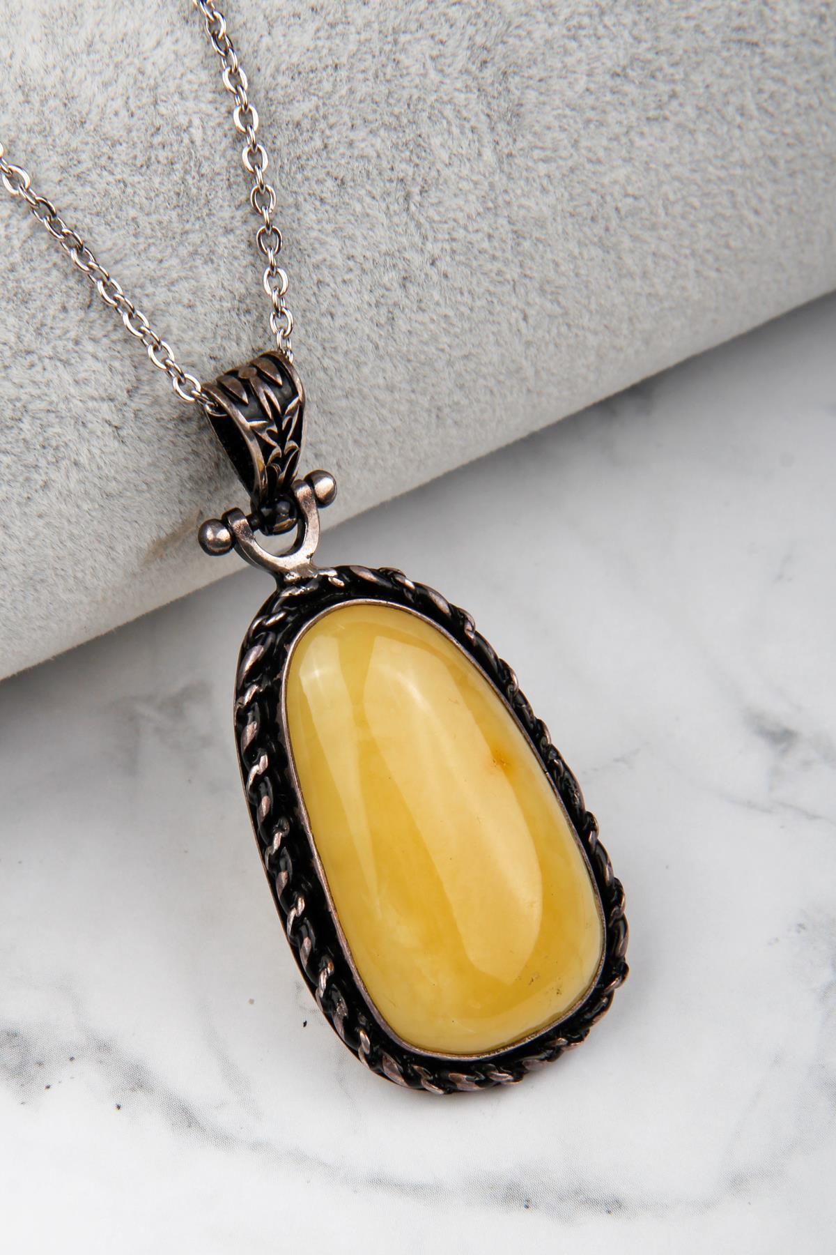 Damla Kehribar 925 Ayar Gümüş KolyeAĞIRLIK – 14,15 grGENİŞLİK – 2,6 cmUZUNLUK – 4,2 cmZincir Modeli Stok Durumuna Göre Değişebilir, Ortalama 45 cm dir.