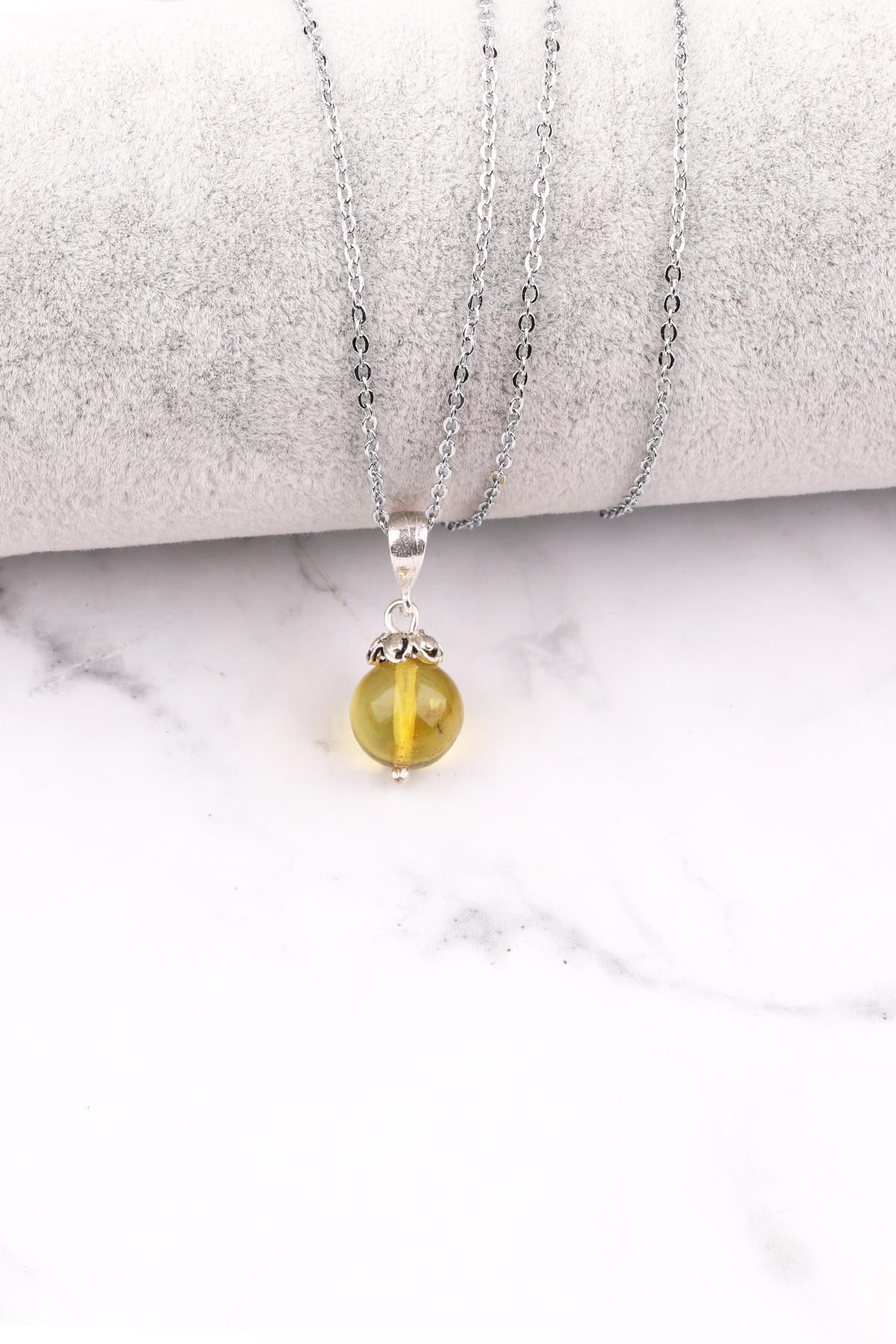 Damla Kehribar 925 Ayar Gümüş Kolye