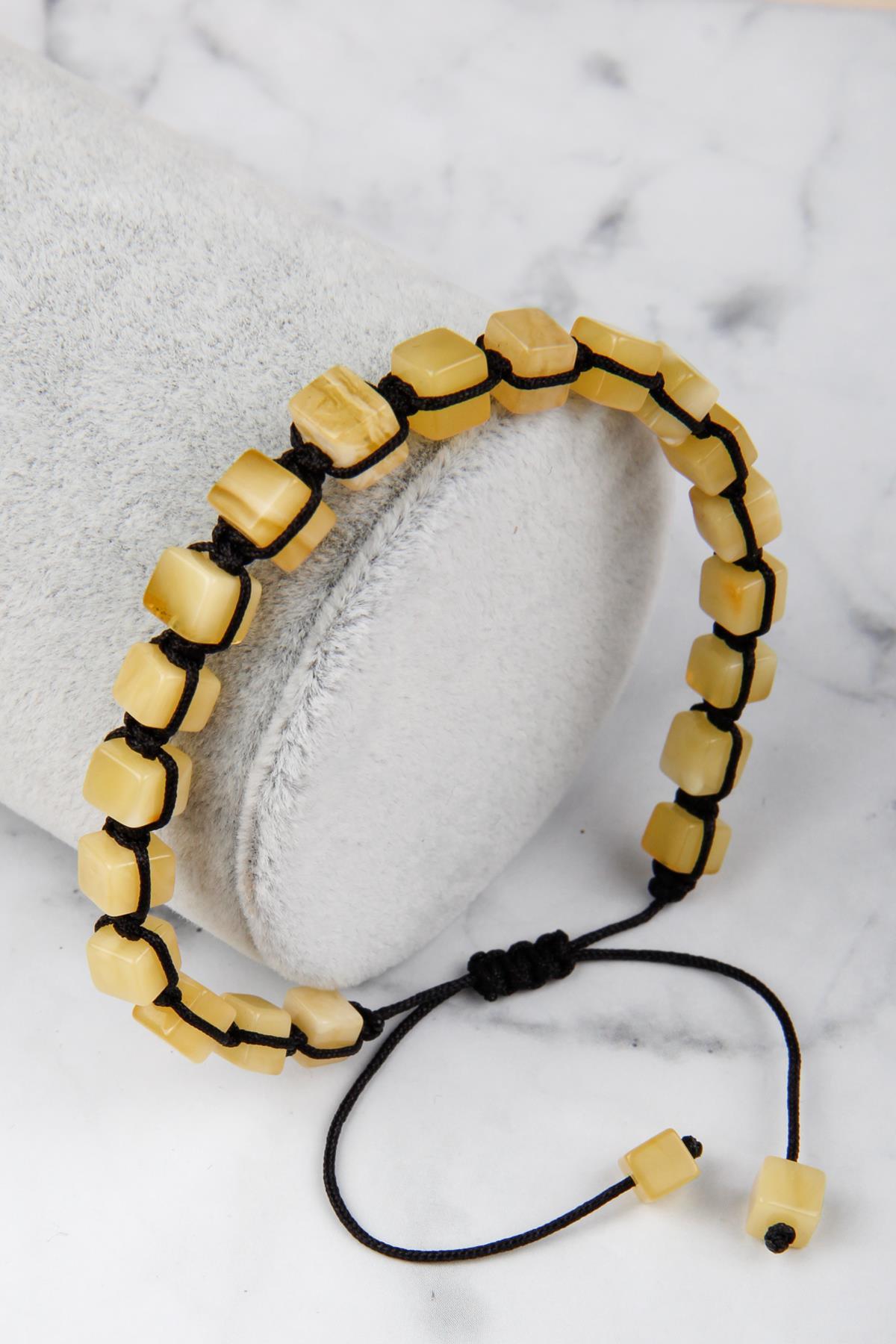 Damla Kehribar Makrome Örme Bileklik AĞIRLIK – 3,5 gr TANE BOYU – 3-4 mmTANE ENİ – 6-7 mm UZUNLUK – Ayarlanabilir, Asansör Sistemli