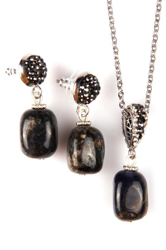 Dumortierit Doğal Taş Kolye – Küpe SetAĞIRLIK – 14 grGENİŞLİK – 1,2 cmYÜKSEKLİK – 1,8 cm