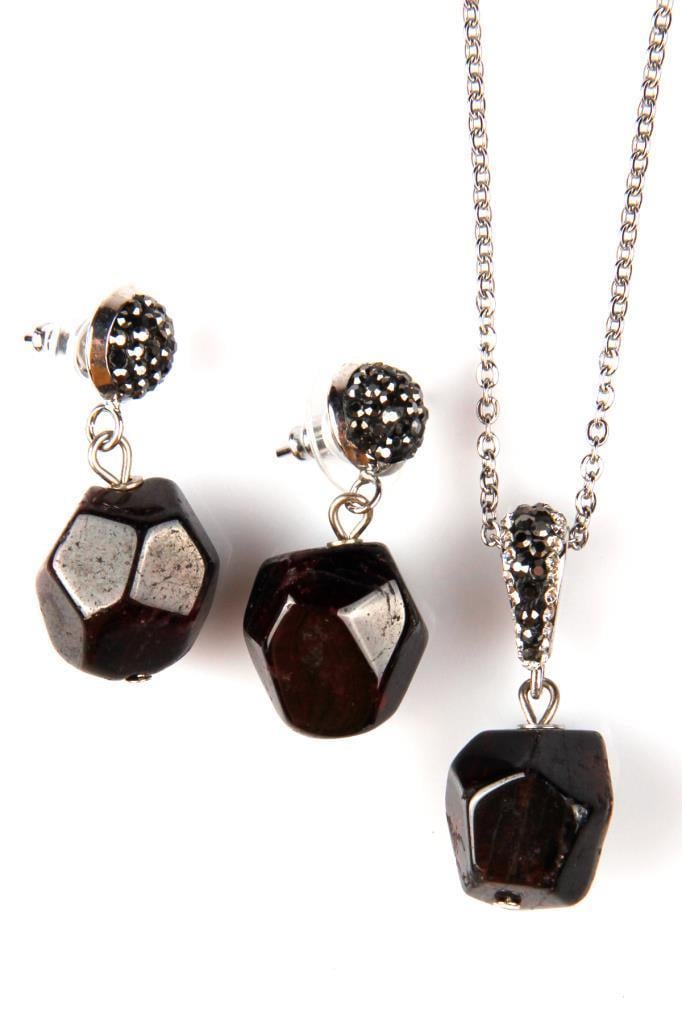 Garnet - Lal Doğal Taş Kolye – Küpe SetAĞIRLIK – 25 grGENİŞLİK – 1,5 cmYÜKSEKLİK – 2 cm