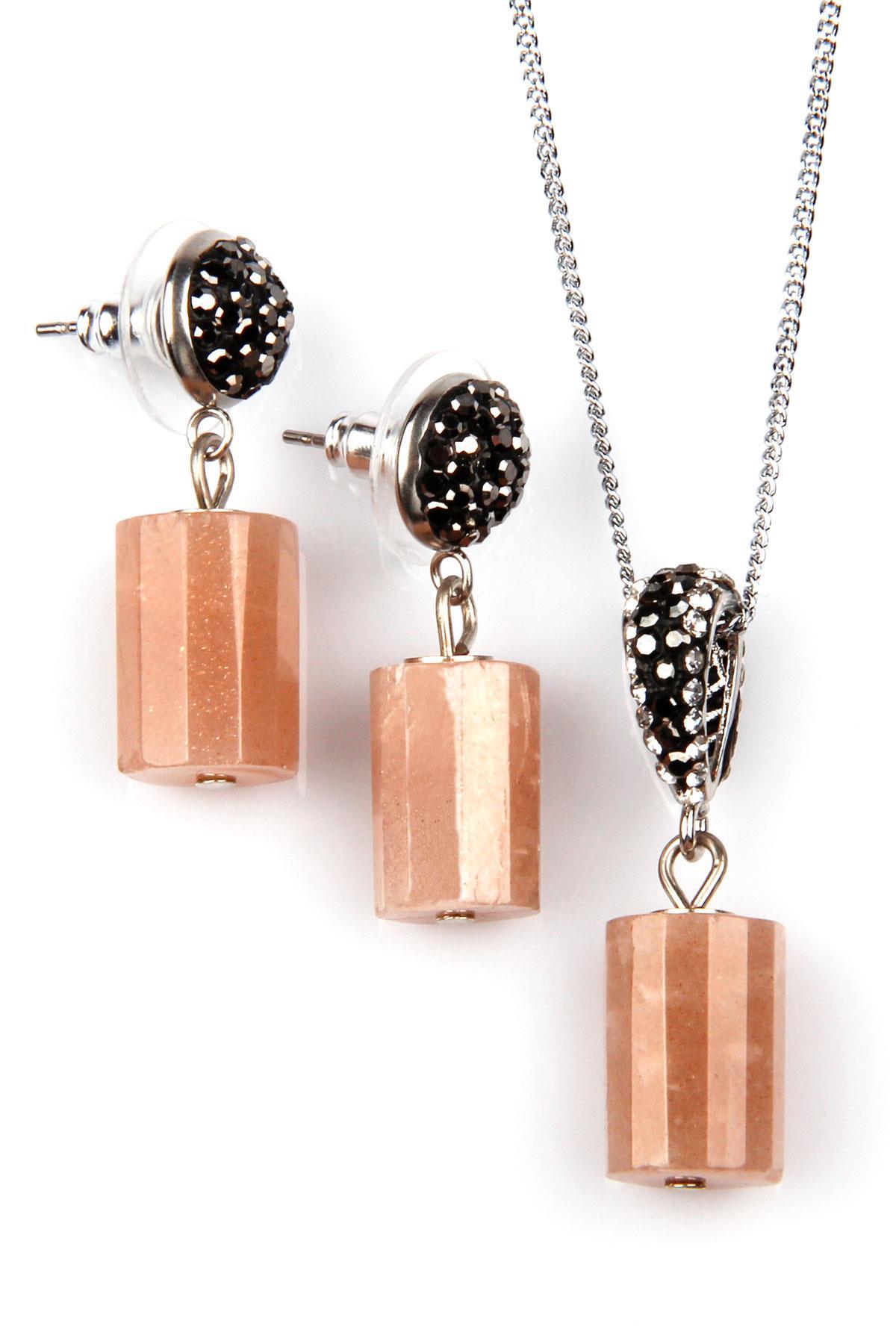 Güneş Taşı Doğal Taş Kolye - Küpe Set