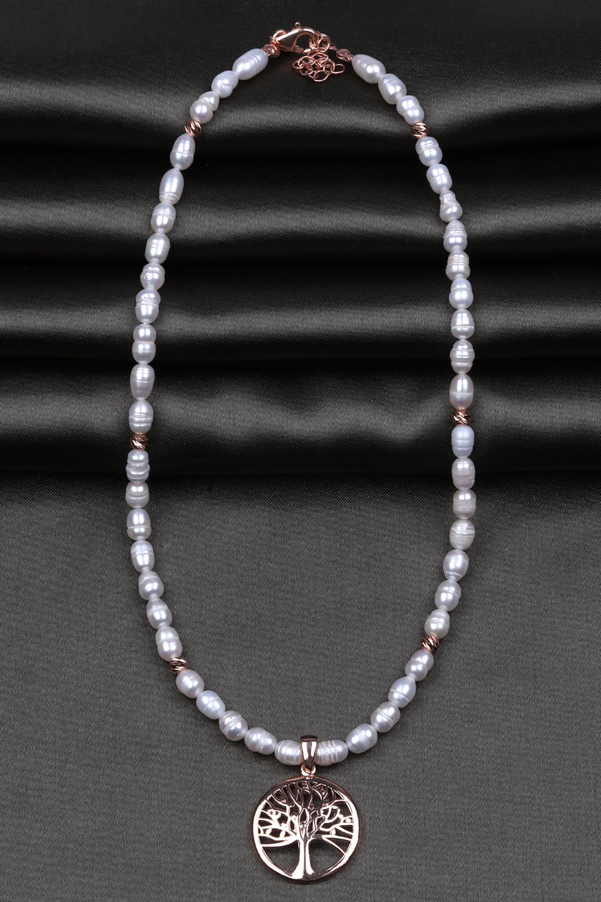İnci Doğal Taş Özel Tasarım Rose 925 Ayar Gümüş Kolye
