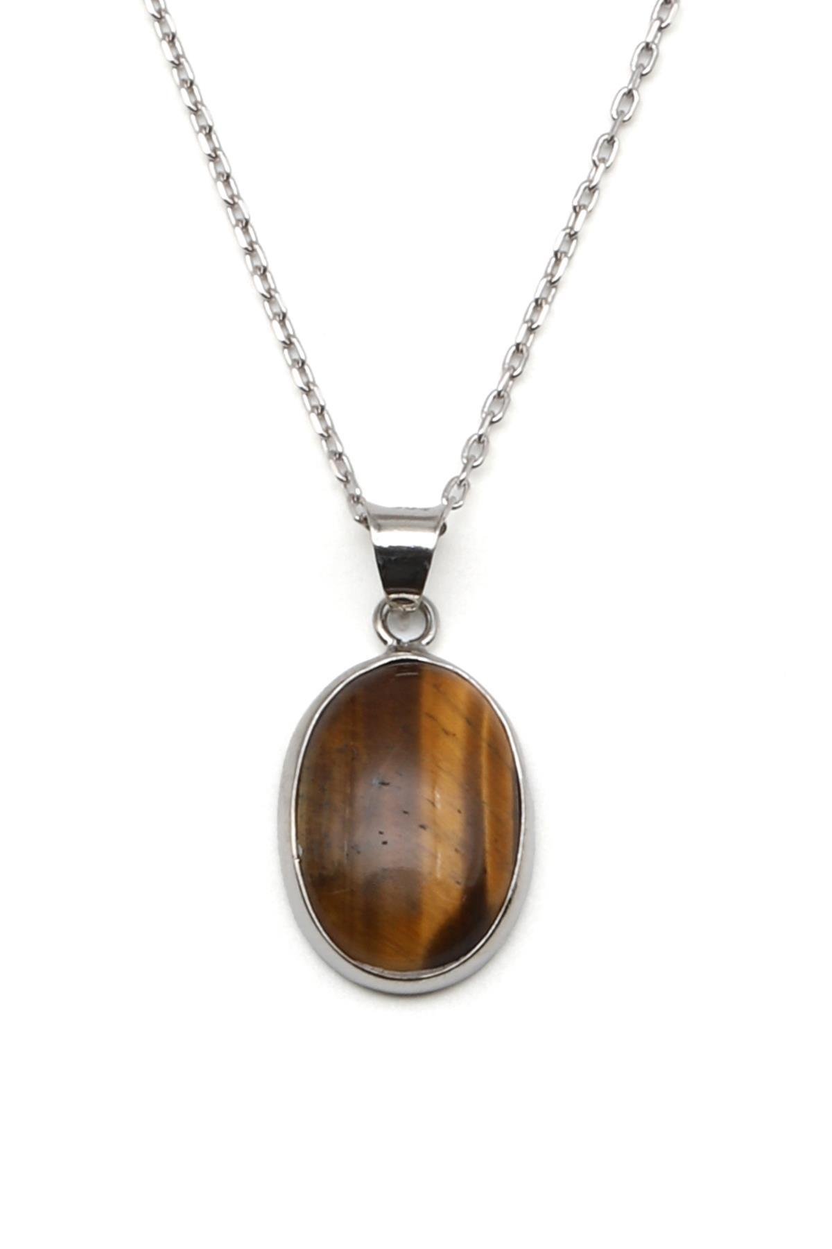 Kaplan Gözü Doğal Taş 925 Ayar Gümüş Kolye (KLYG-974)