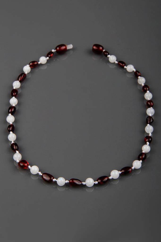 Kehribar – Ay Taşı Doğal Taş Bebek Diş KolyesiAĞIRLIK – 6,2 grKOLYE UZUNLUK – 32 cmTANE BOYU – 4-5 mm