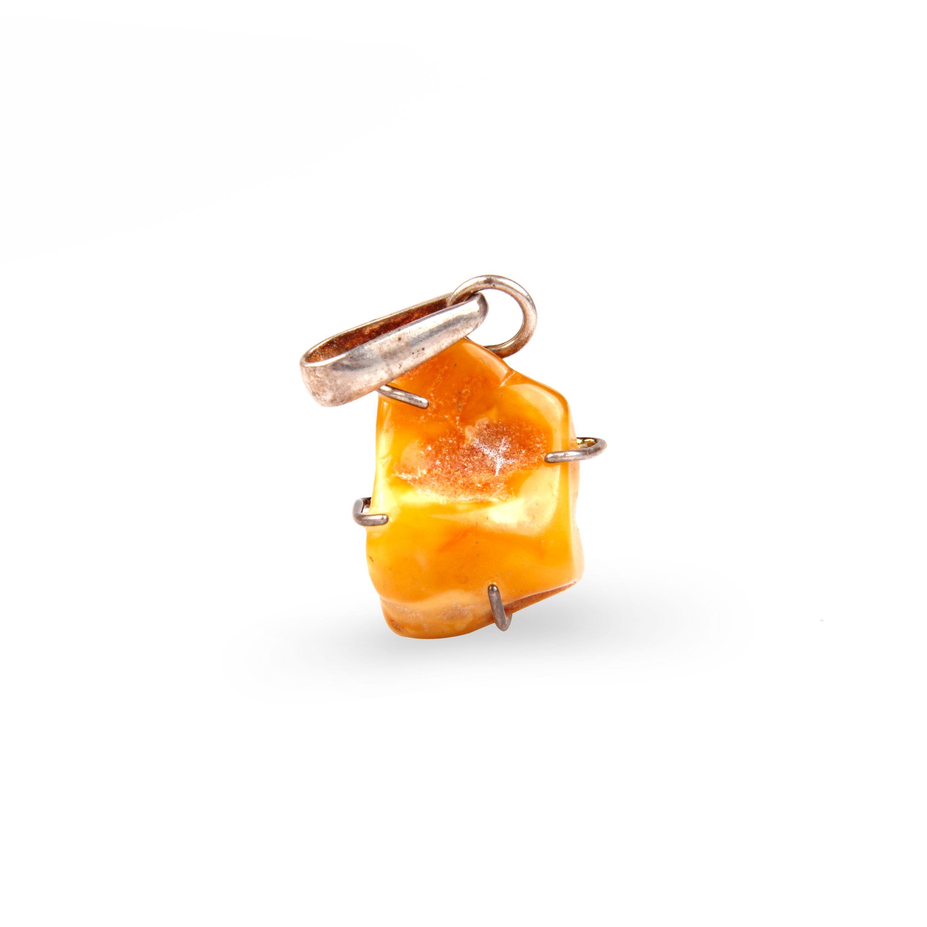 :  Kehribar Kolye Ucu - Gümüş Kafesli (Reçine)