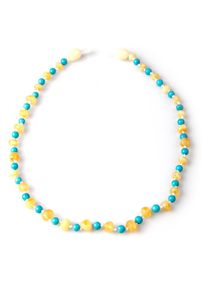 Kehribar – Orijinal Turkuaz Doğal Taş Bebek Diş KolyesiAĞIRLIK – 5,6 grKOLYE UZUNLUK – 32 cmTANE BOYU – 4-5 mm