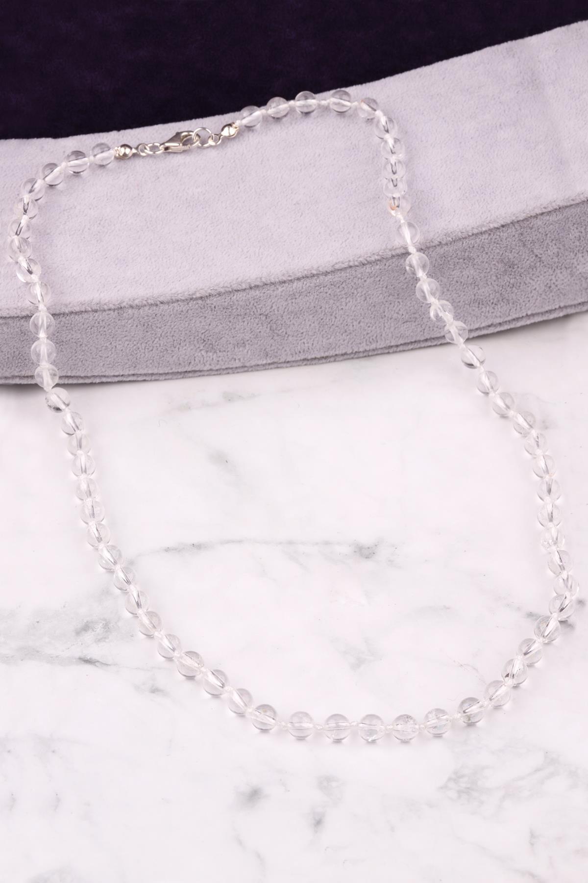 Kristal Kuvars Doğal Taş Düğümlü Kolye 6 mm Küre KesimAĞIRLIK – 20 grTANE BOYU – 6 mmTANE ENİ – 6 mmUZUNLUK – 50 cmKLİPS - Gümüş