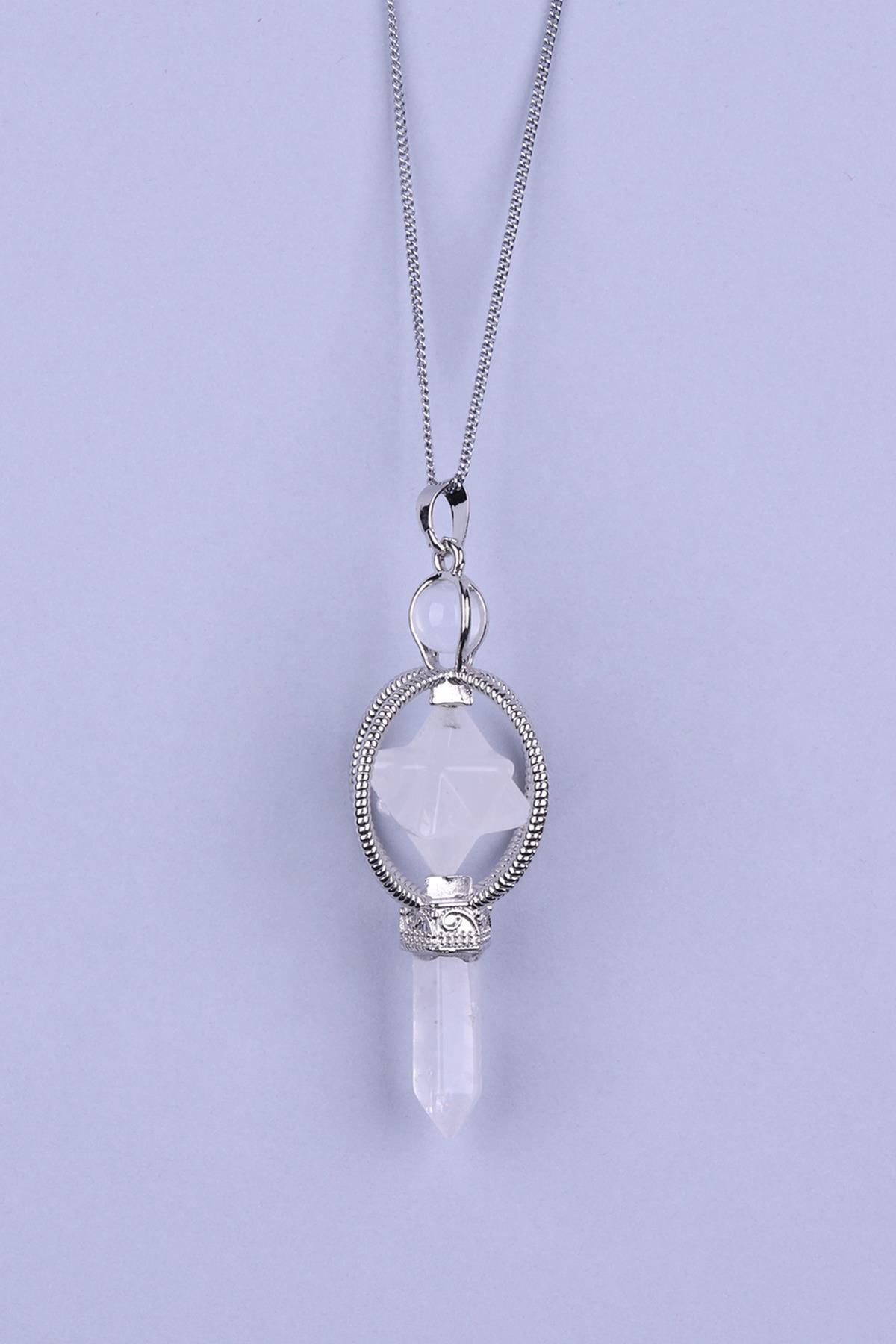 Kristal Kuvars Doğal Taş Merkaba Kolye