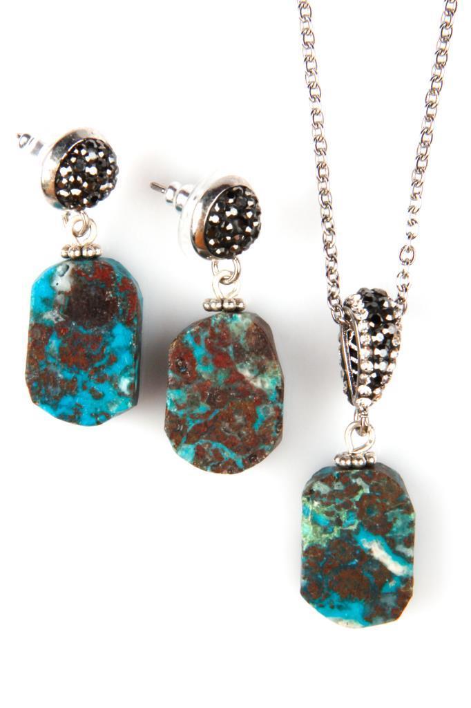 Krizokol Doğal Taş Kolye – Küpe SetAĞIRLIK – 13 grGENİŞLİK – 1,5 cmYÜKSEKLİK – 2 cm