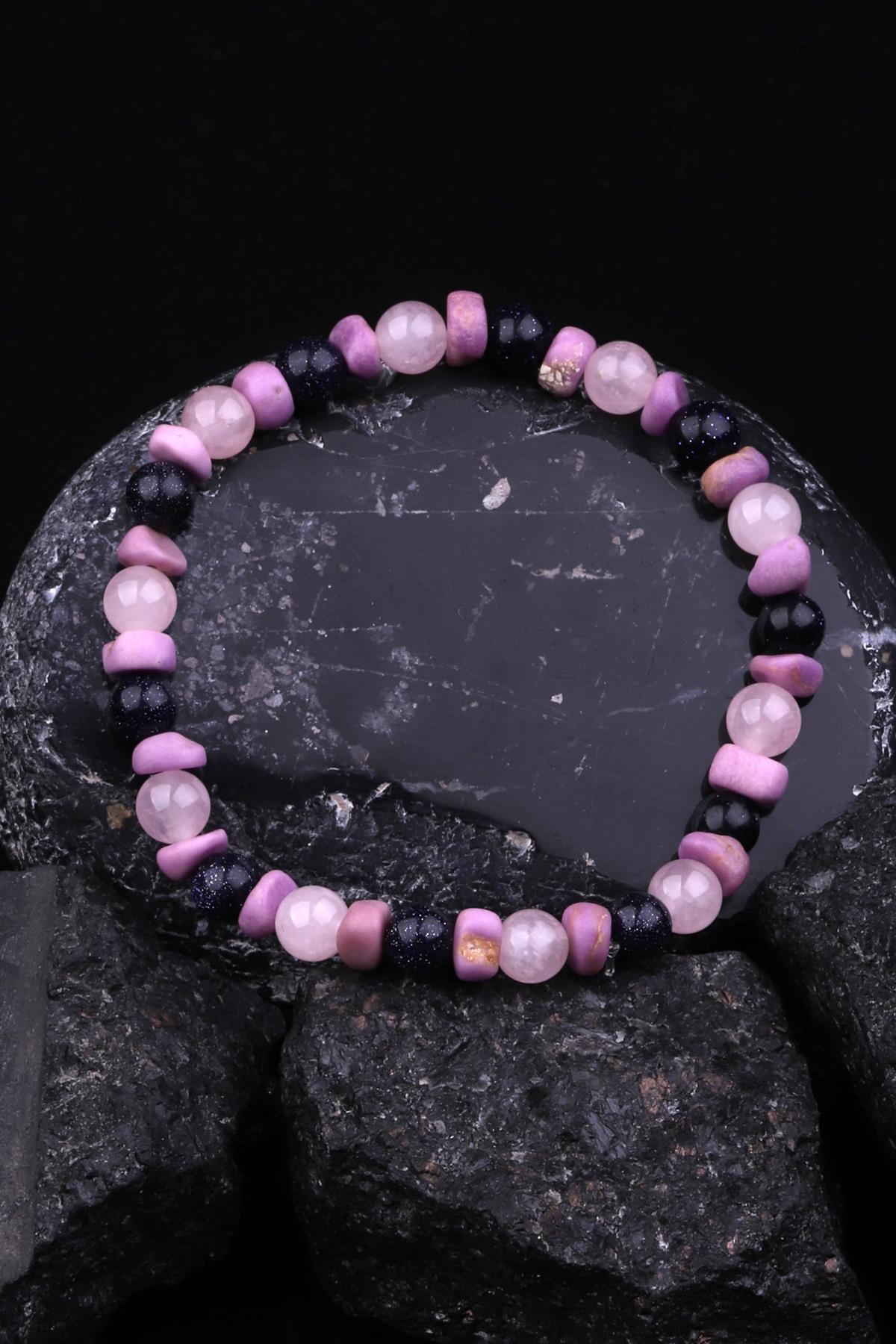 Kunzit-Yıldız Taşı-Fosfosiderit Doğal Taş Tasarım Bileklik