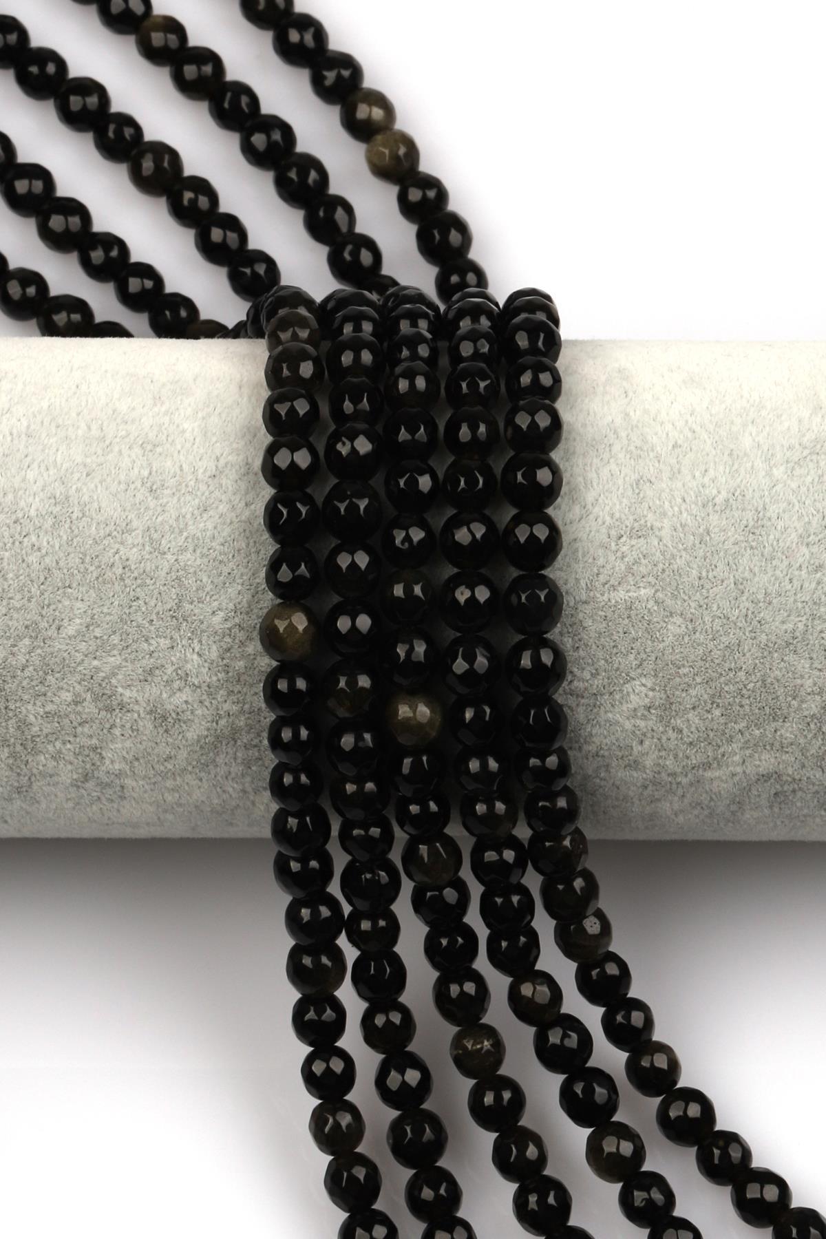 Gold Obsidyen Doğal Taş Dizi 6 mm Fasetli Küre Kesim