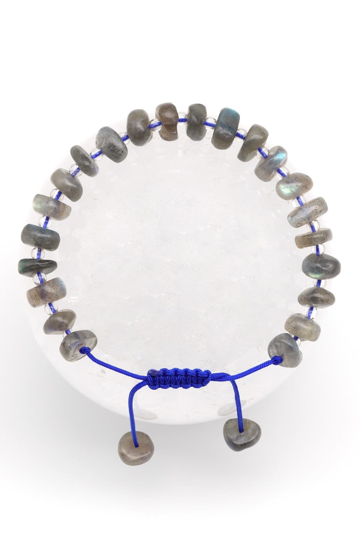 Labradorit Doğal Taş Makrome Örme Bileklik Şekilsiz Kesim