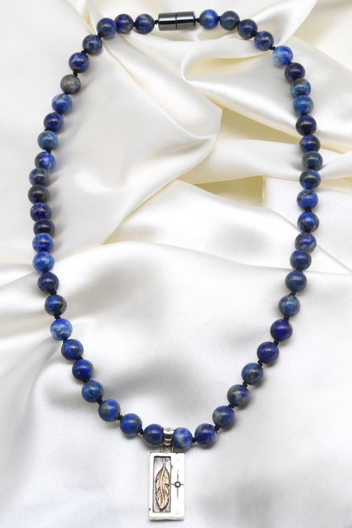 Lapis Lazuli Doğal Taş Özel Tasarım 925 Ayar Gümüş Kolye
