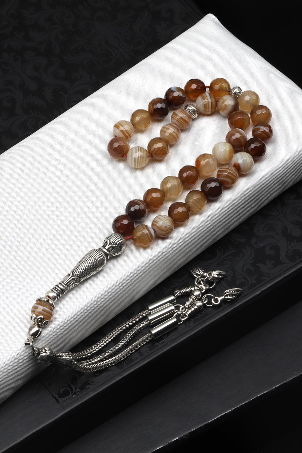 :  Madagaskar Akik Doğal Taş Tesbih - 8 mm Fasetli Küre Kesim