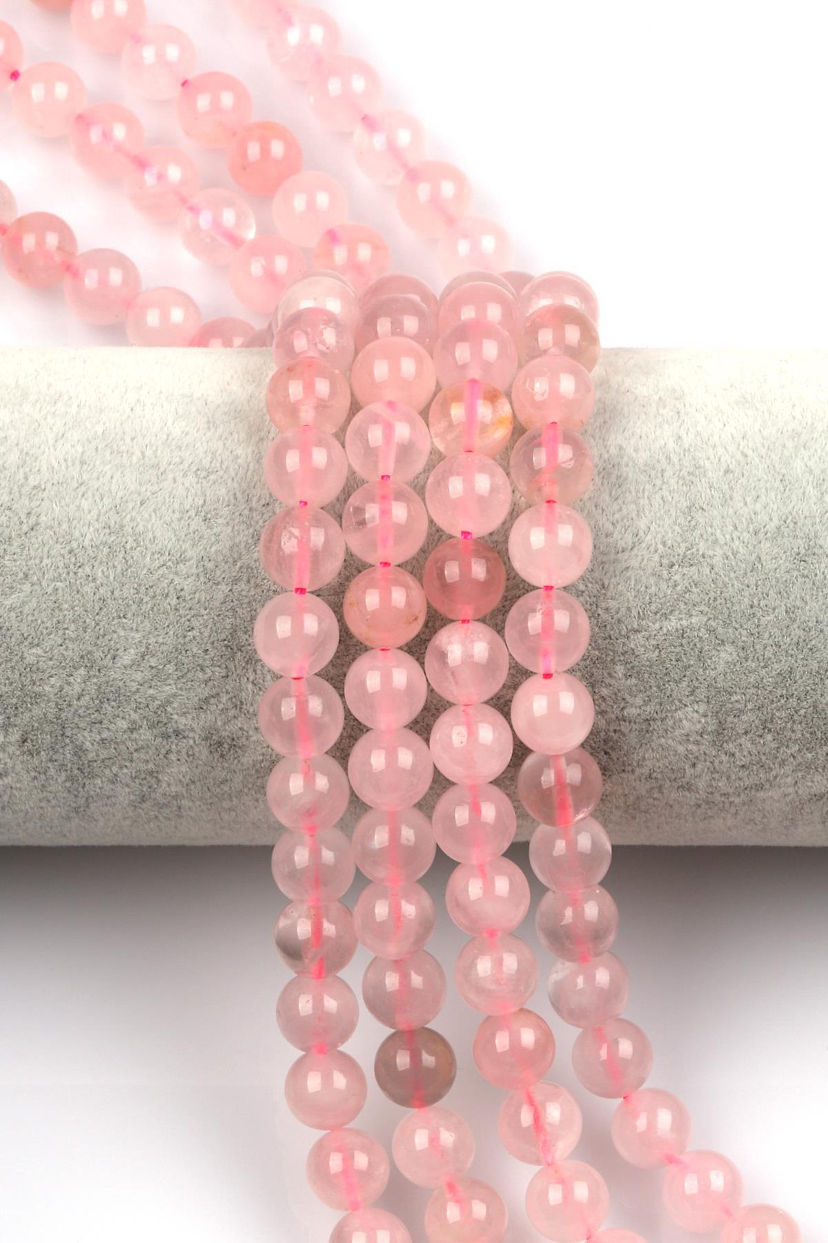 Madagaskar Pembe Kuvars ( AB Kalite ) Doğal Taş Dizi 8 mm Küre Kesim