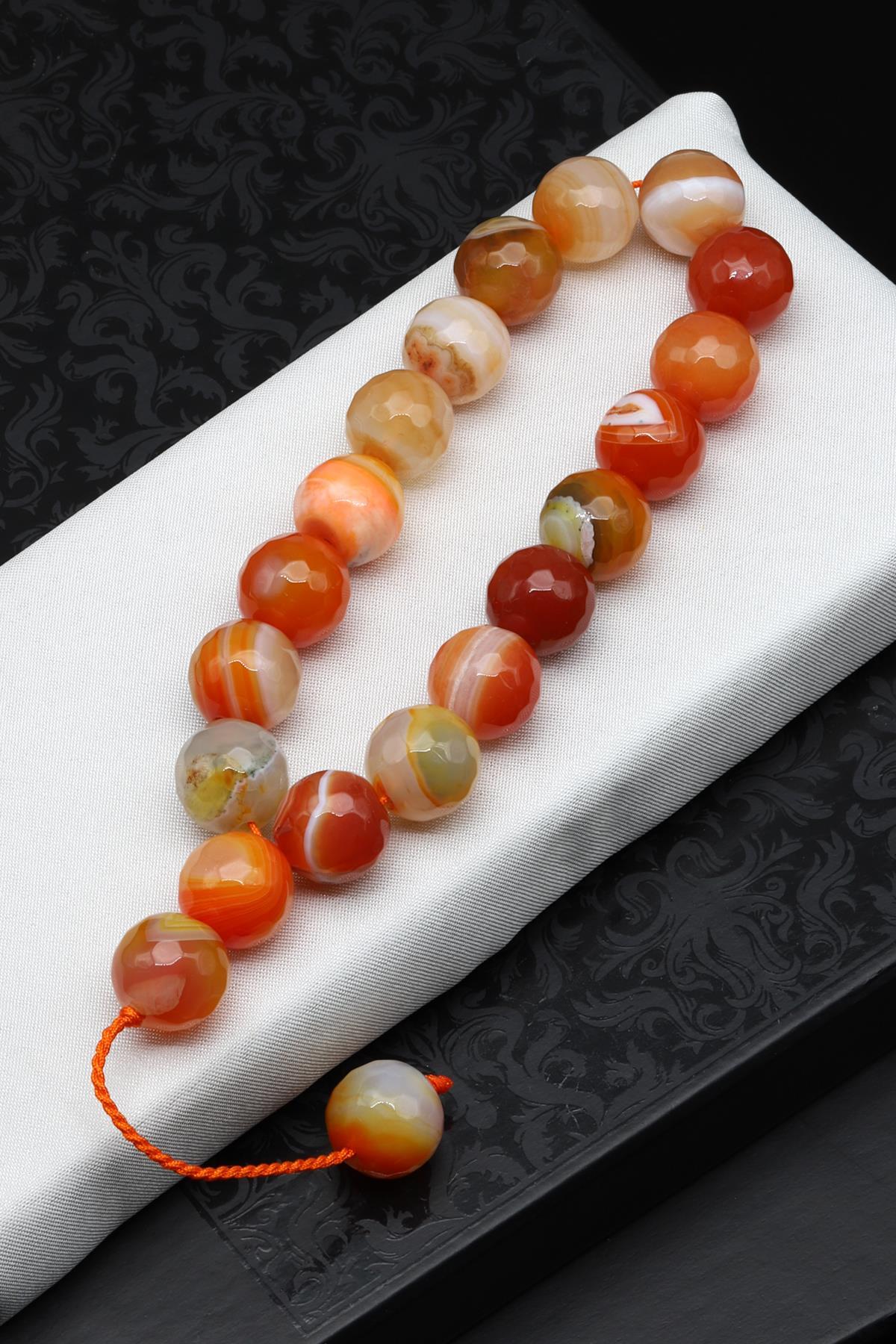 Maskot Efe Akik Doğal Taş Tesbih 13 mm Fasetli Küre Kesim