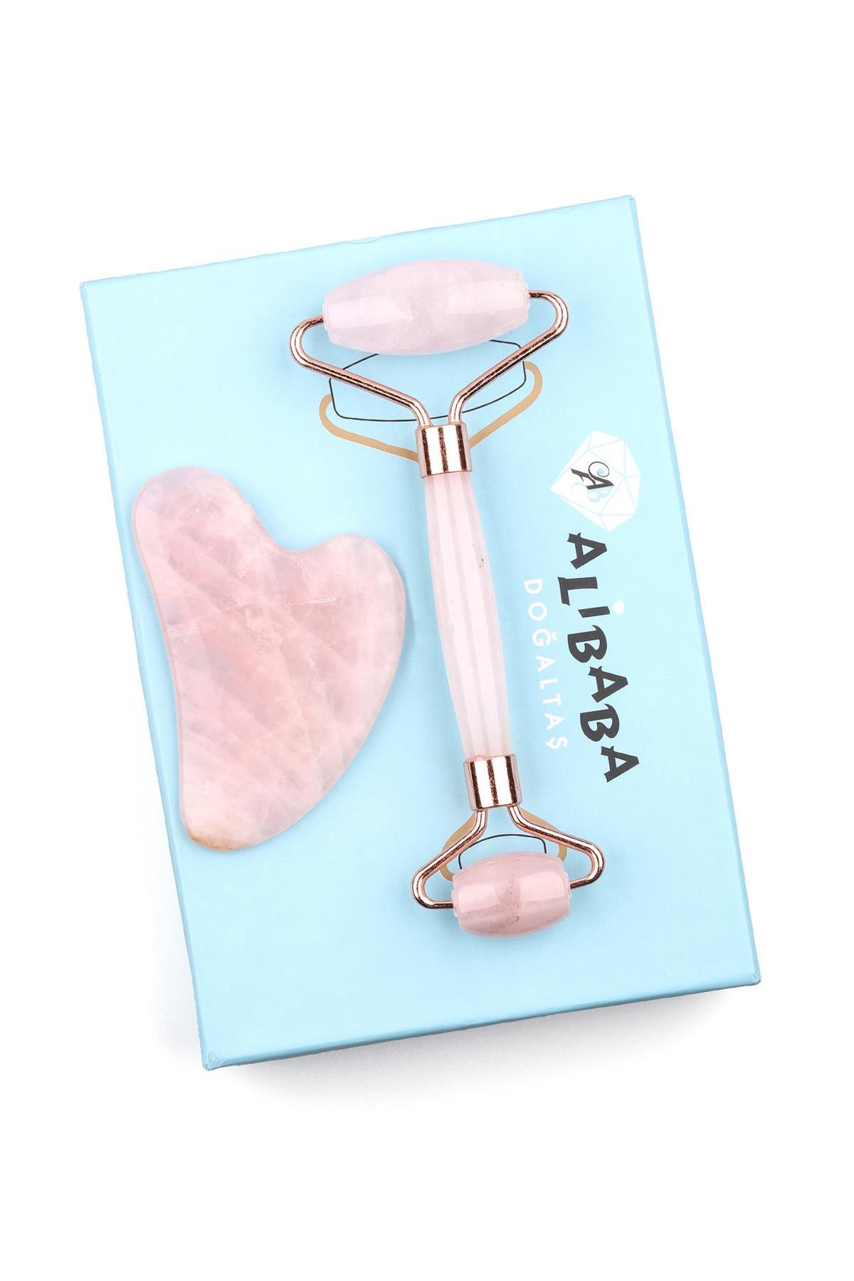 Pembe Kuvars Doğal Taş 2’li Özel Kutulu Set Face Roller + Gua Sha Masaj Taşı