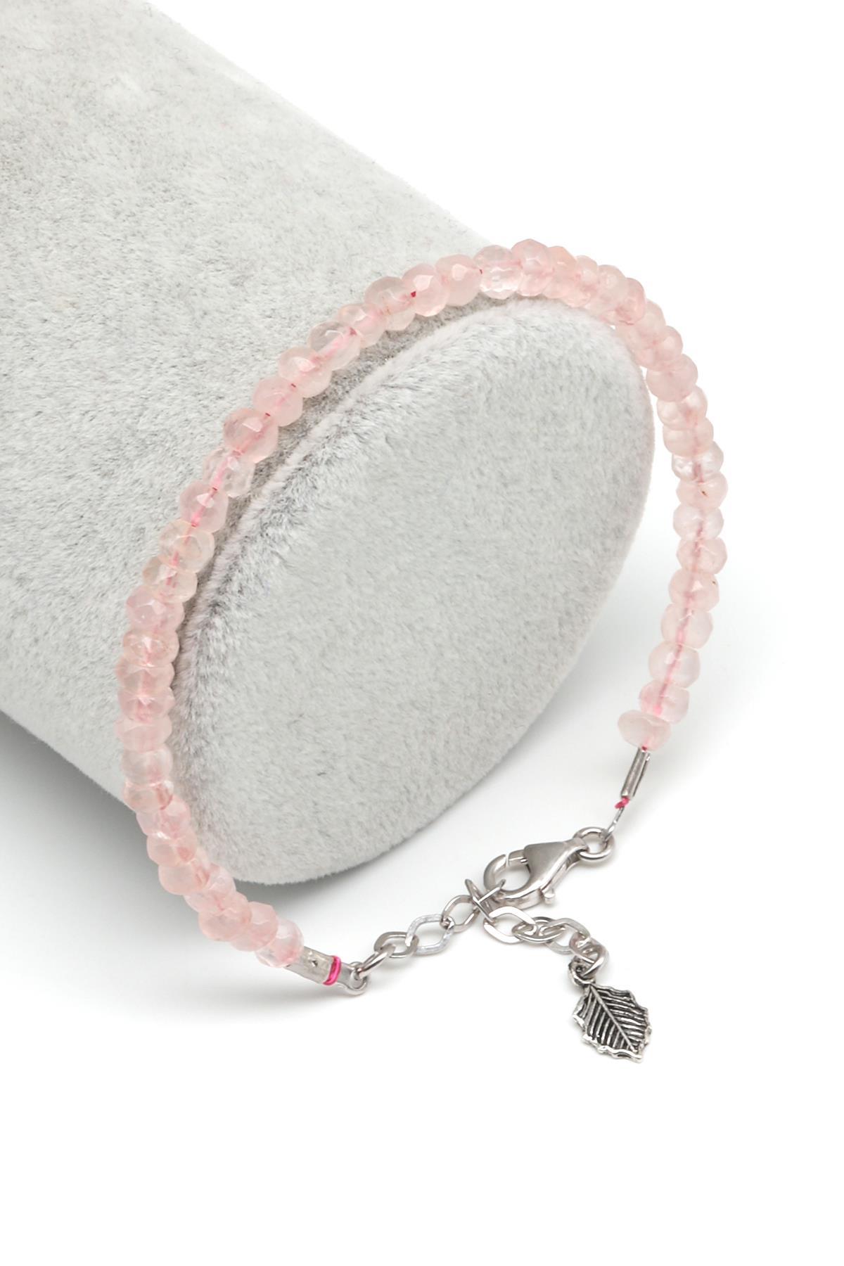 Pembe Kuvars Doğal Taş 925 Ayar Gümüş Bileklik