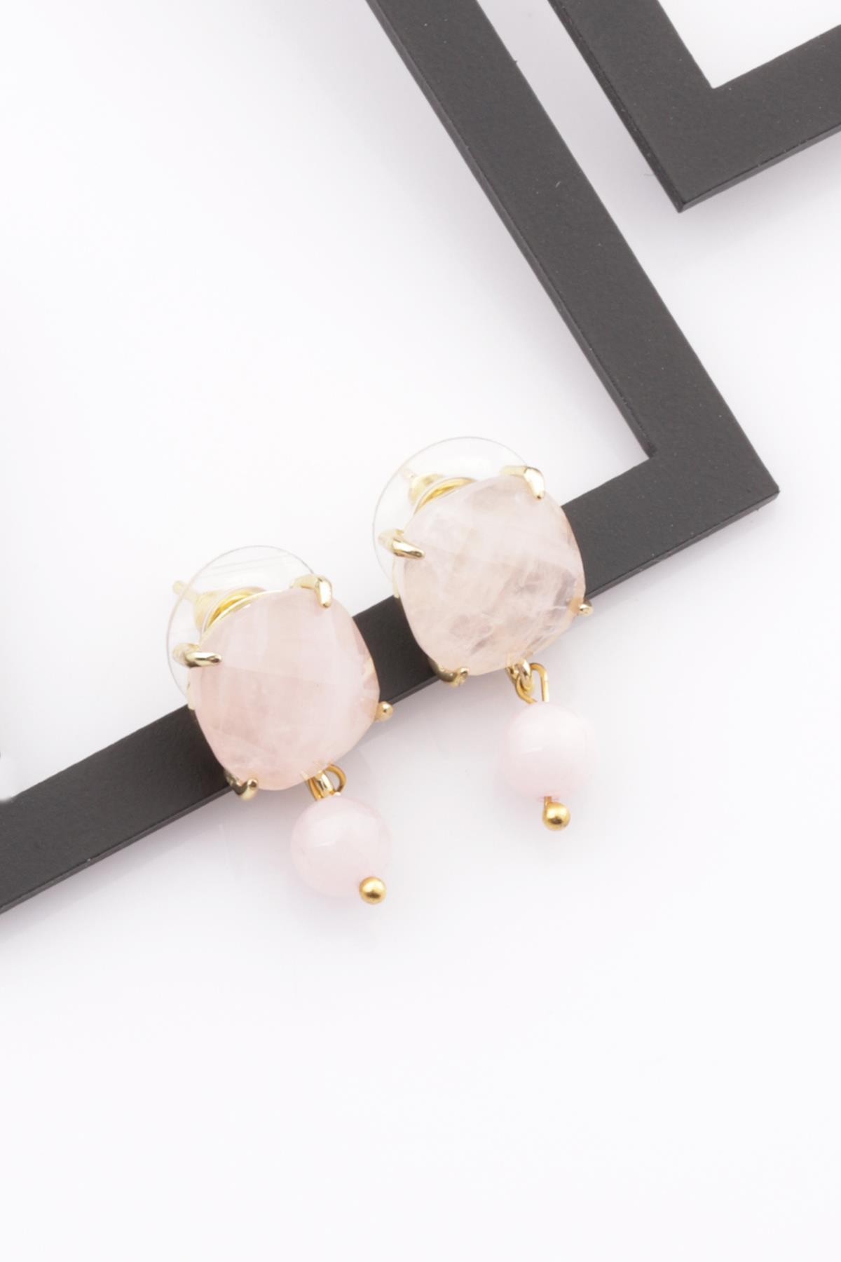 Pembe Kuvars Doğal Taş Gold Renkli Küpe (KP-0053)