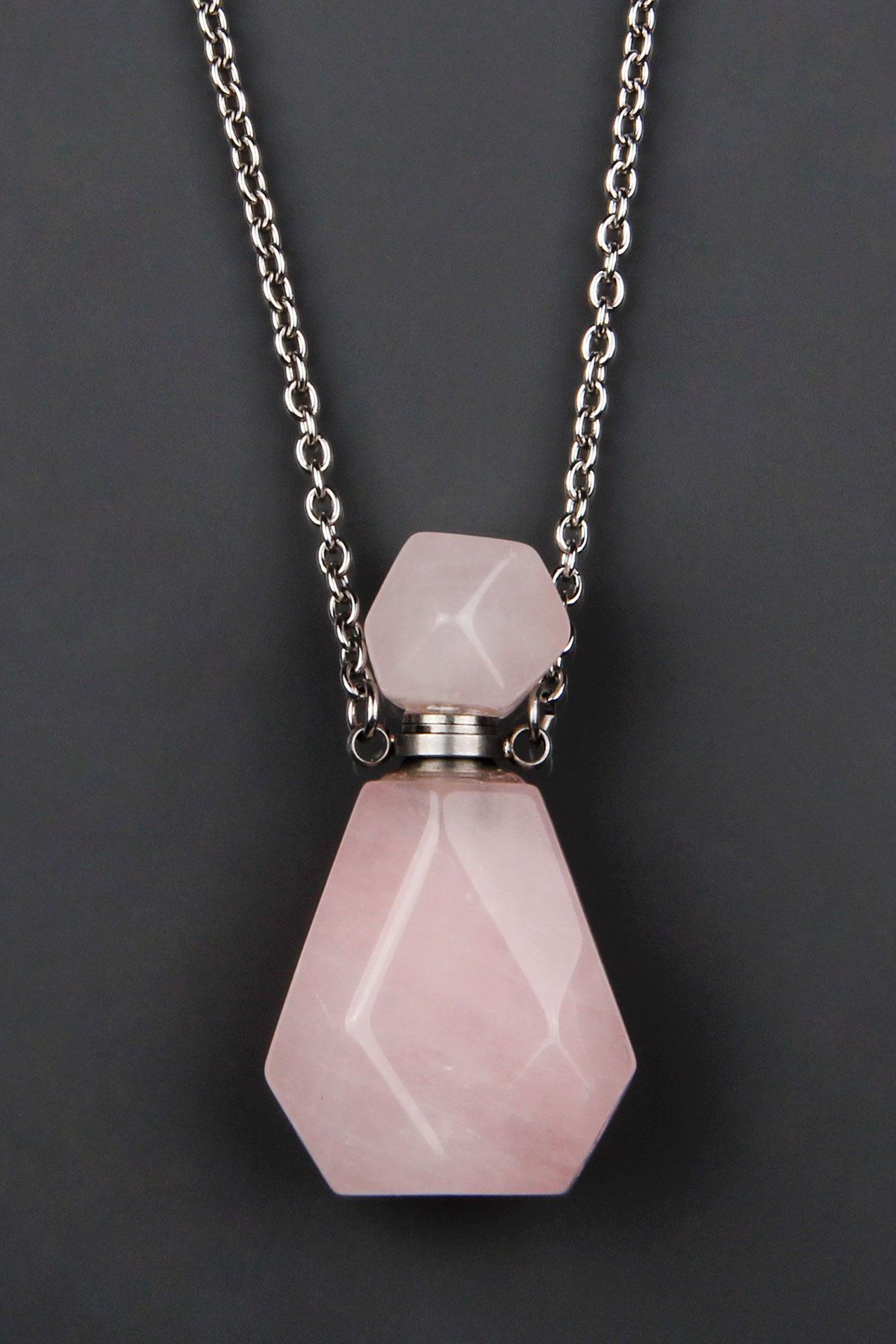 Pembe Kuvars Doğal Taş Parfüm Şişe Tasarımlı Kolye