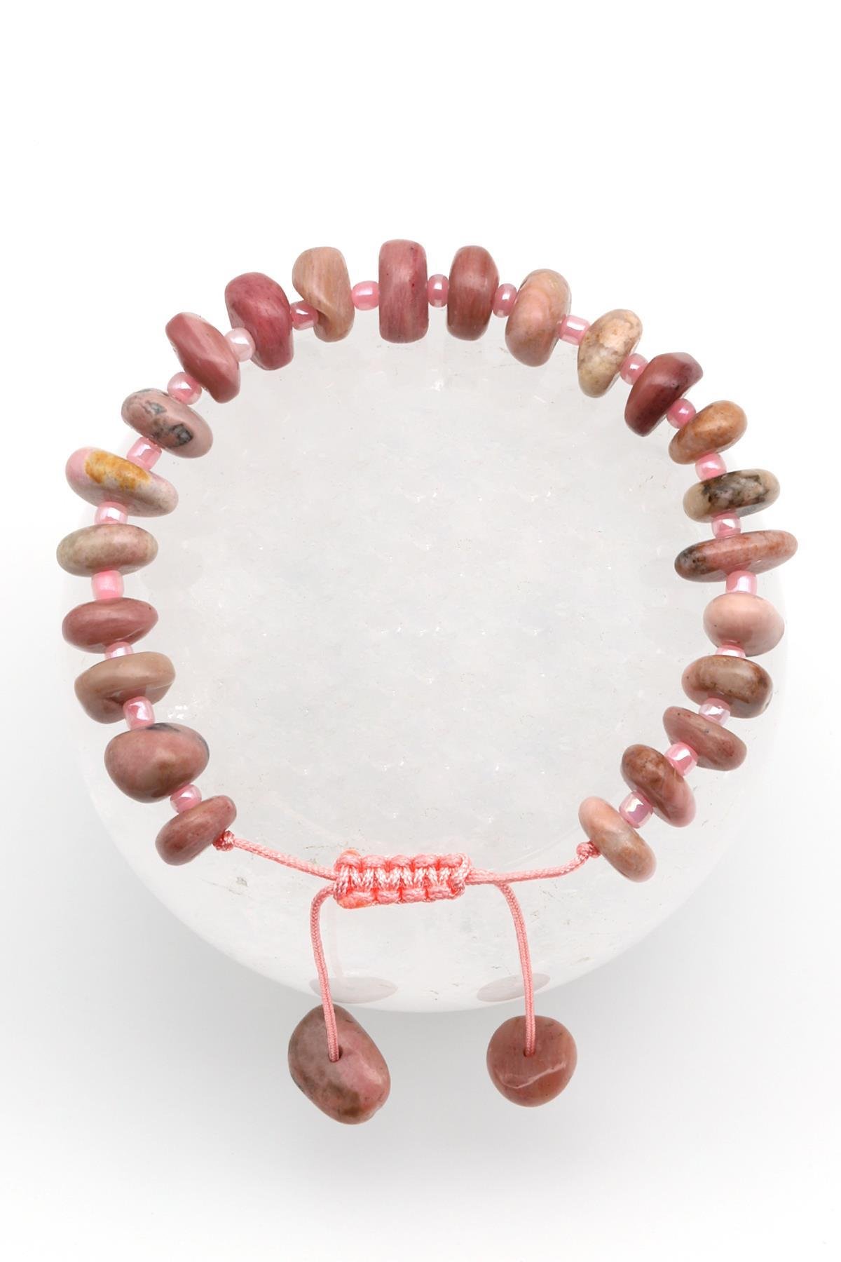 Jasper Doğal Taş Makrome Örme Bileklik Şekilsiz Kesim