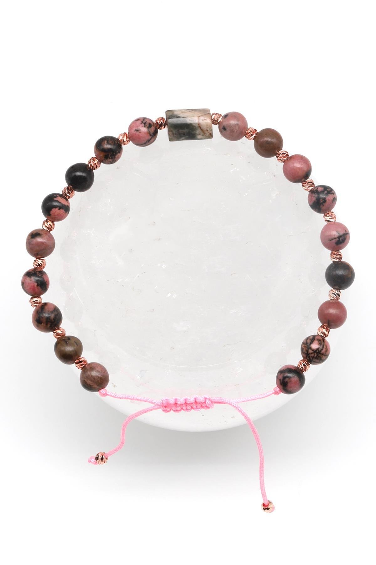 Rodonit Doğal Taş Makrome Örme Bileklik Küre Kesim