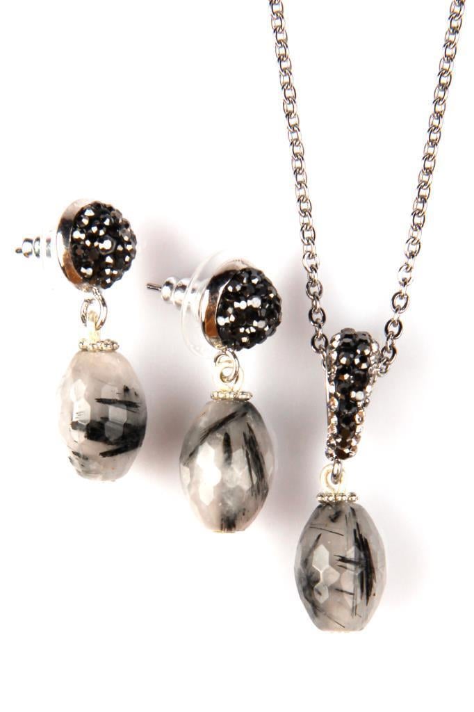 Rutil Kuvars Doğal Taş Kolye – Küpe SetAĞIRLIK – 10 grGENİŞLİK – 1 cmYÜKSEKLİK – 2 cm