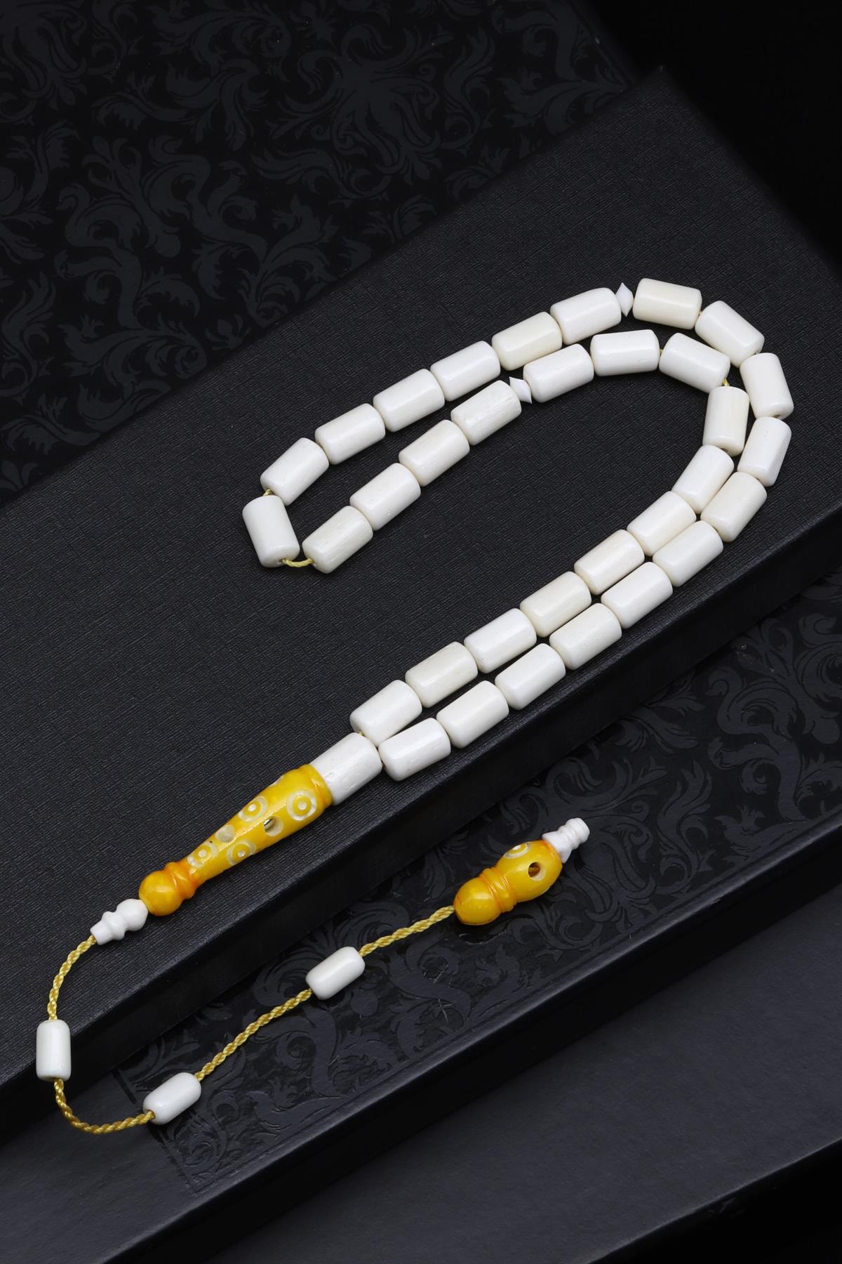 Sarı İmameli Kemik Tesbih 6 x 9 mm Silindir Kesim