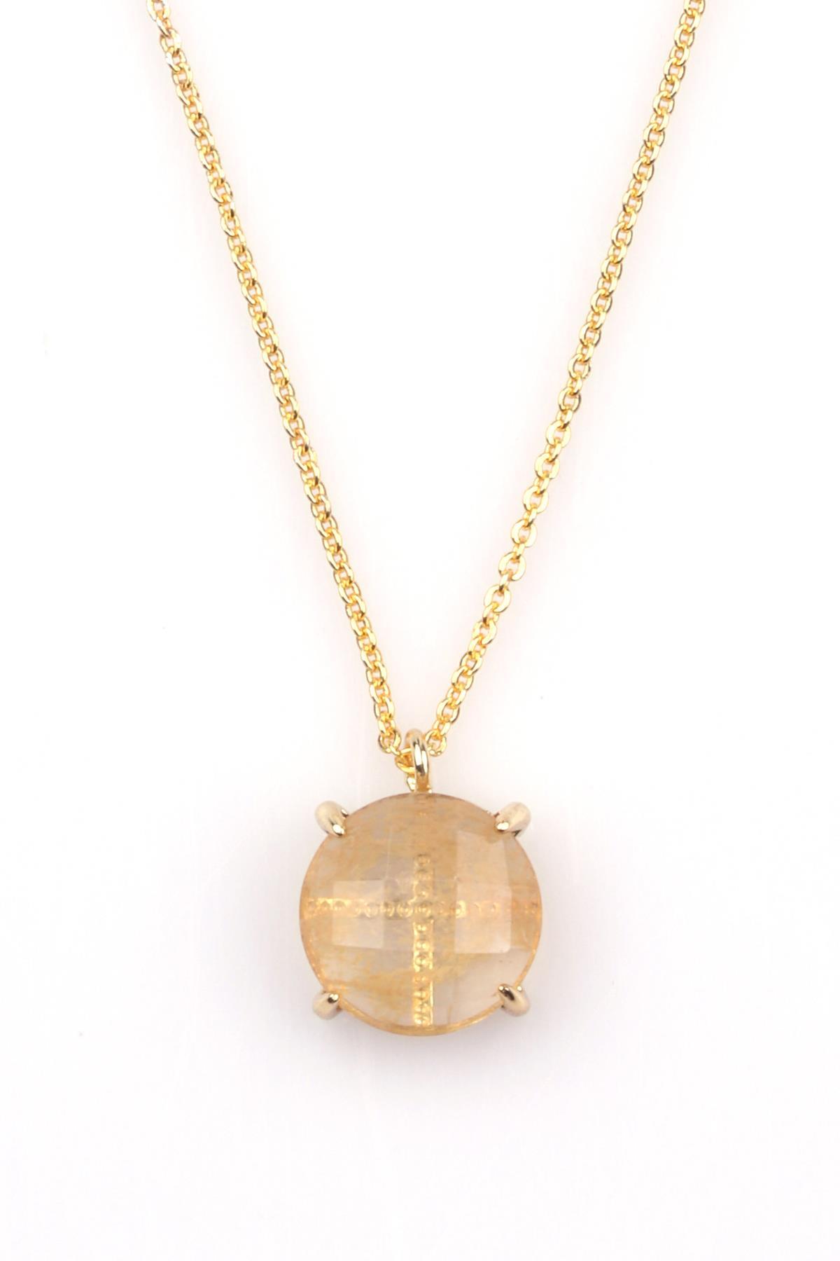 Sitrin Doğal Taş Gold Renkli Kolye (KLY-1281)