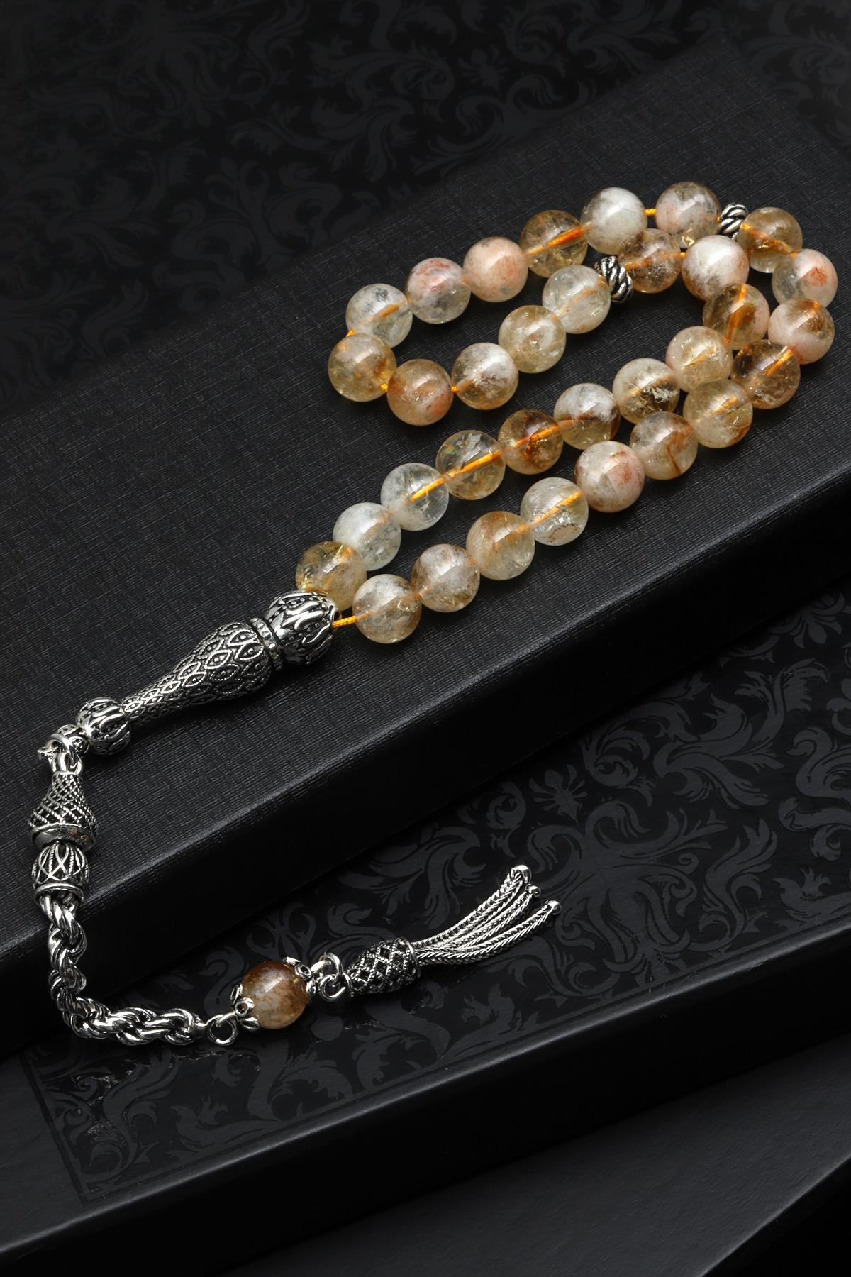 Sitrin Doğal Taş Tesbih 925 Ayar Gümüş 8 mm Küre Kesim