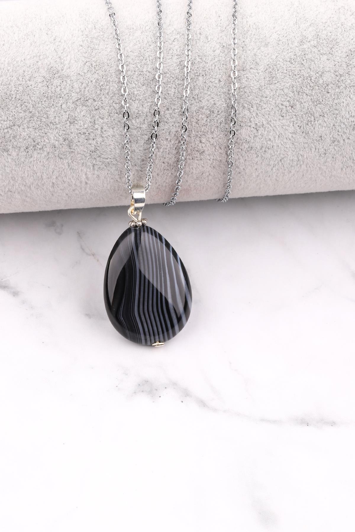 Siyah Akik Doğal Taş Damla Model KolyeAĞIRLIK – 9 grGENİŞLİK – 2,2 cmUZUNLUK – 3,2 cmZincir Modeli Stok Durumuna Göre Değişkenlik Gösterebilir, Ortalama Zincir Uzunluğu 45 cm’dir.Ürün Fotoğrafı Temsili Fotoğraftır, Ürünümüz Doğal Taş Olduğundan Renklerinde, Ağırlıklarında ve Boyutlarında Farklılıklar Gösterebilir.