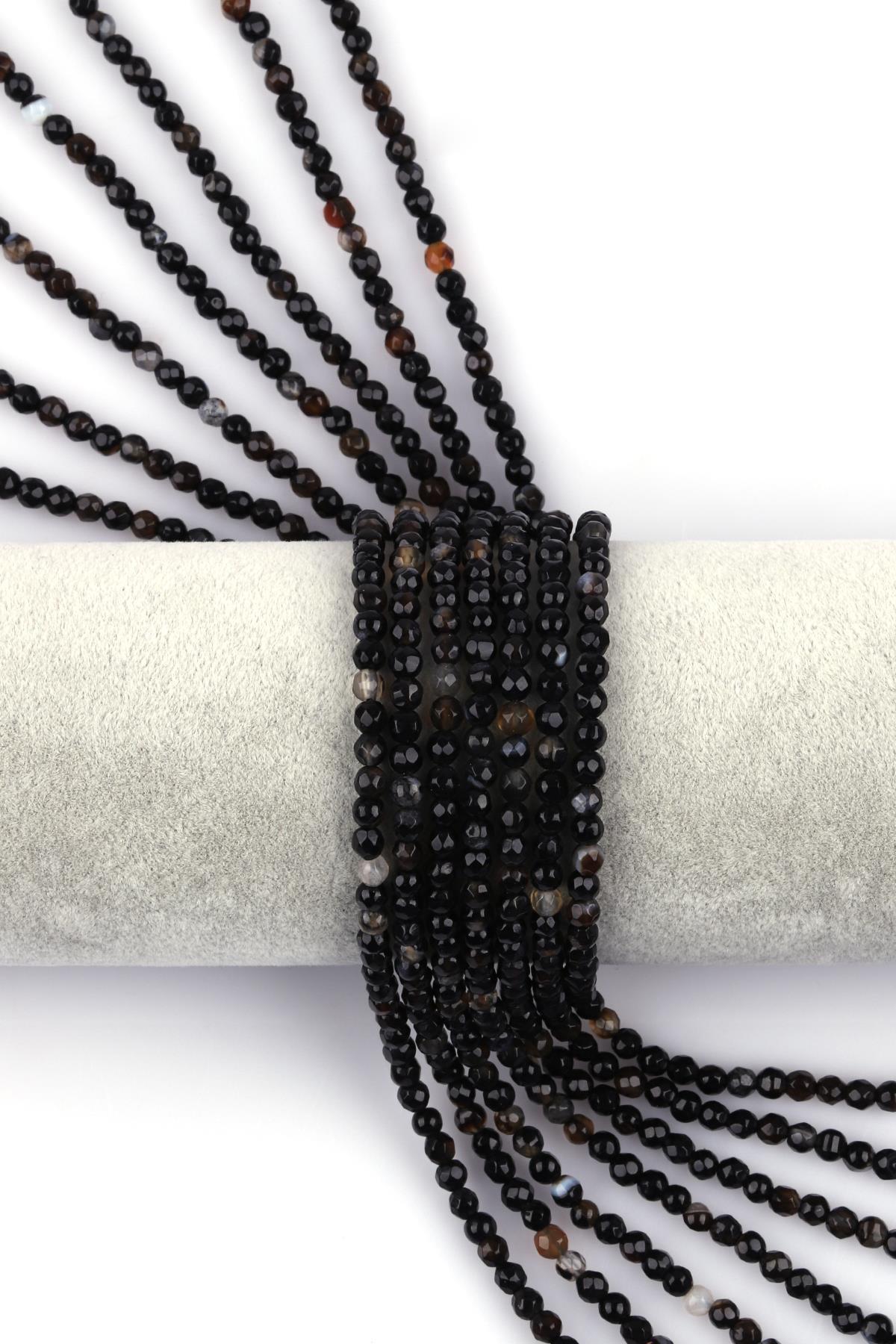 Siyah Akik Doğal Taş Dizi 4 mm Fasetli Küre Kesim