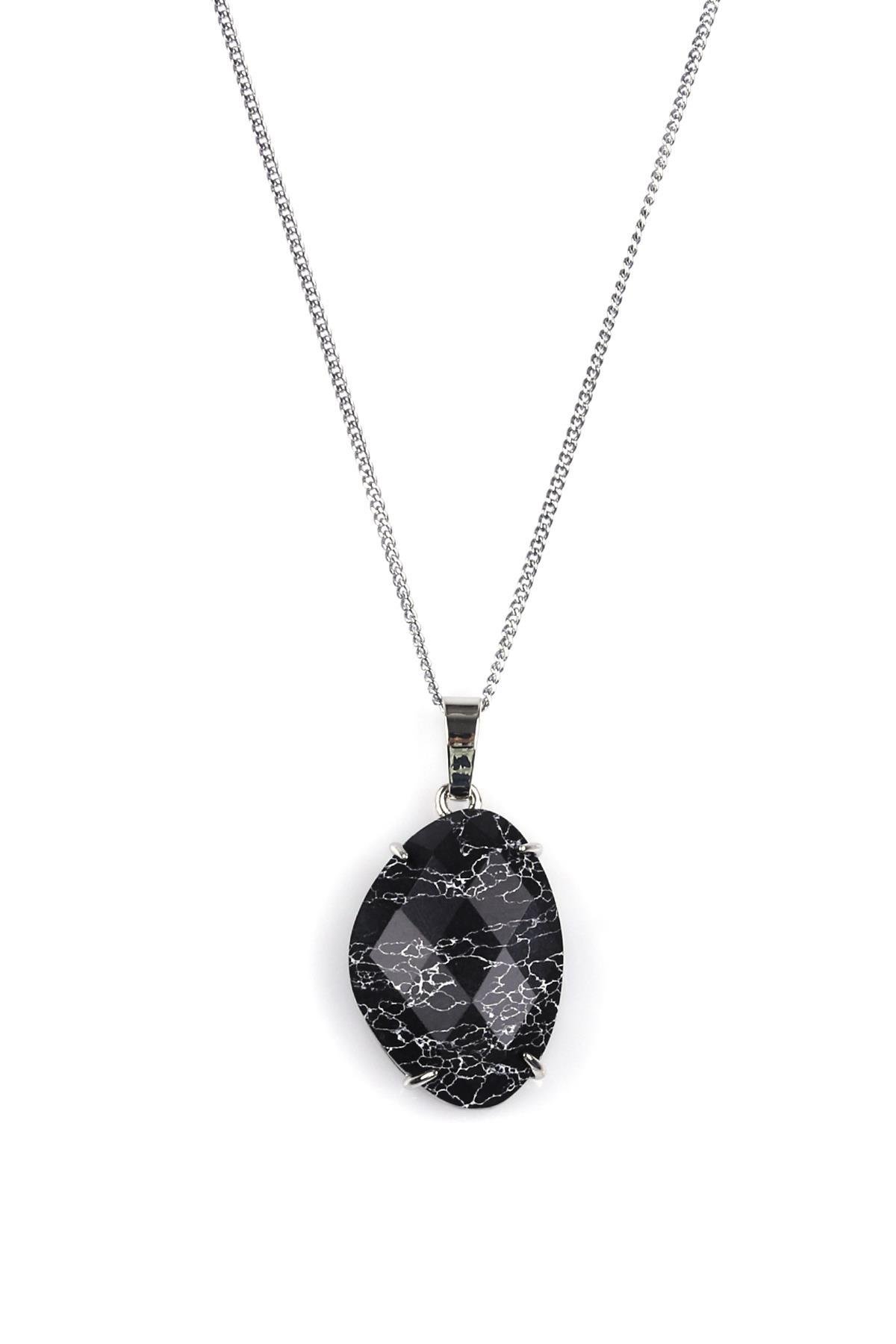 Siyah Jasper Doğal Taş Gümüş Renkli Kolye