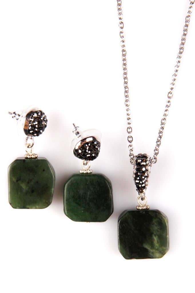Tayvan Yeşim Doğal Taş Kolye – Küpe SetAĞIRLIK – 19 grGENİŞLİK – 2 cmYÜKSEKLİK – 2 cm