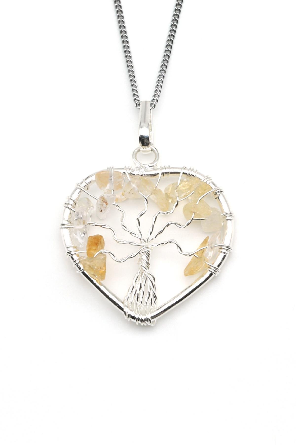 Tel Sarmalı Sitrin Doğal Taş Hayat Ağacı Kalp Model Kolye