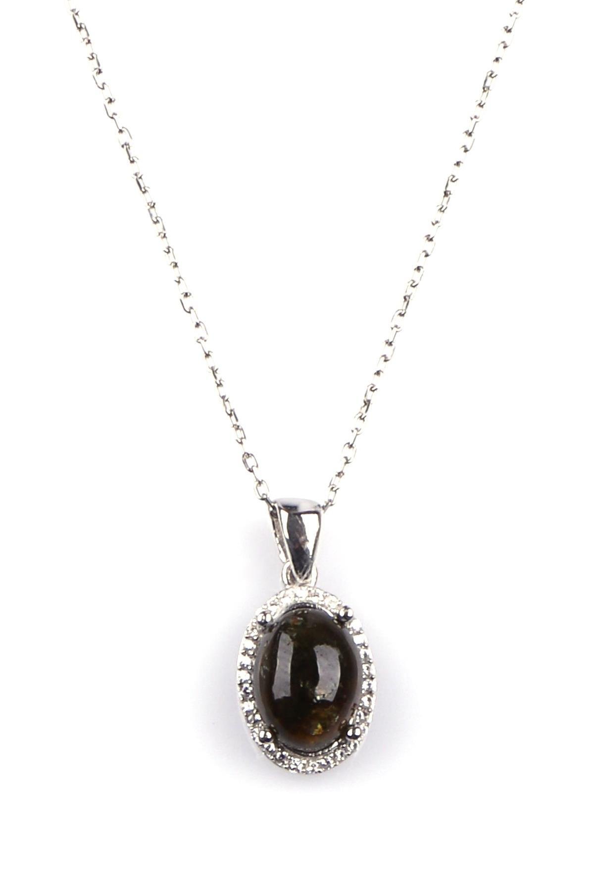 Vardanite Turmalin Doğal Taş 925 Ayar Gümüş Kolye