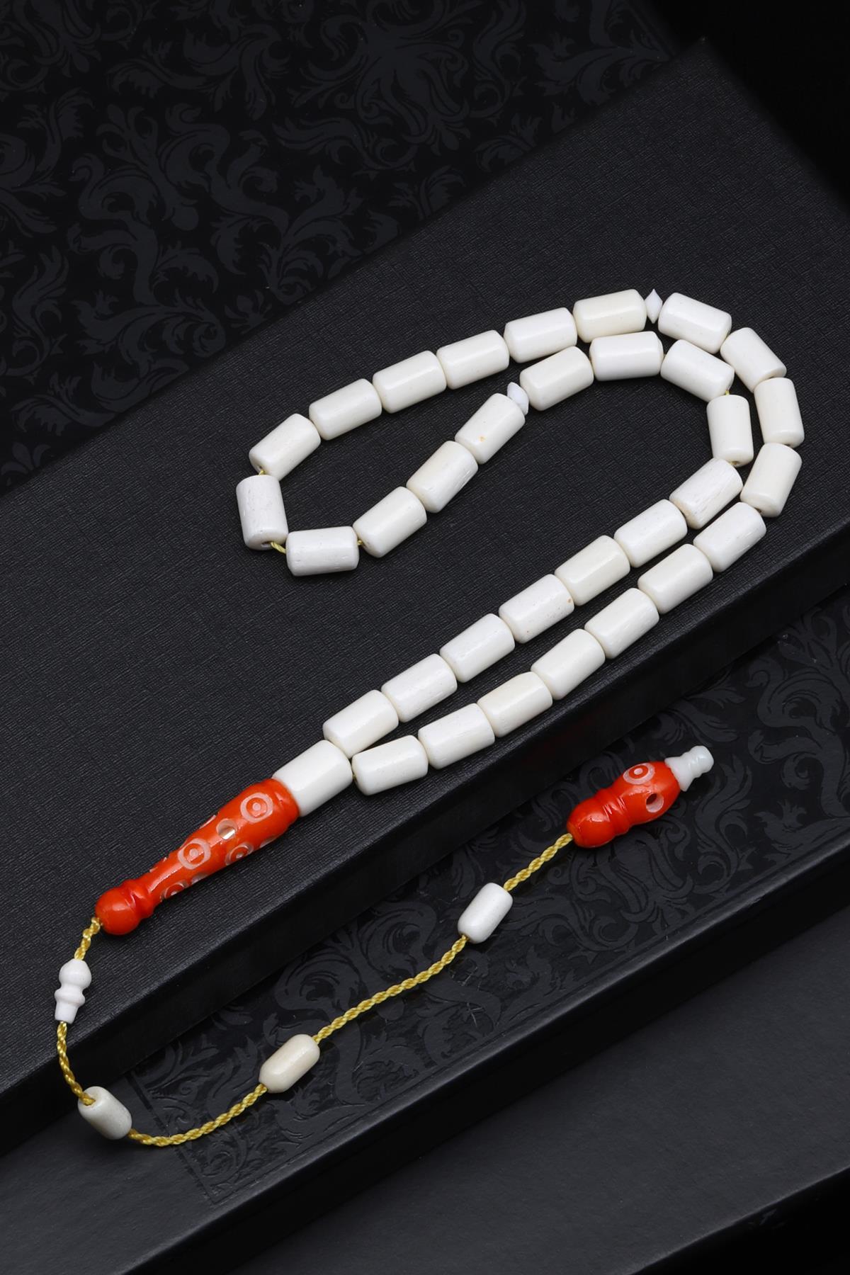 Turuncu İmameli Kemik Tesbih 6 x 9 mm Silindir Kesim