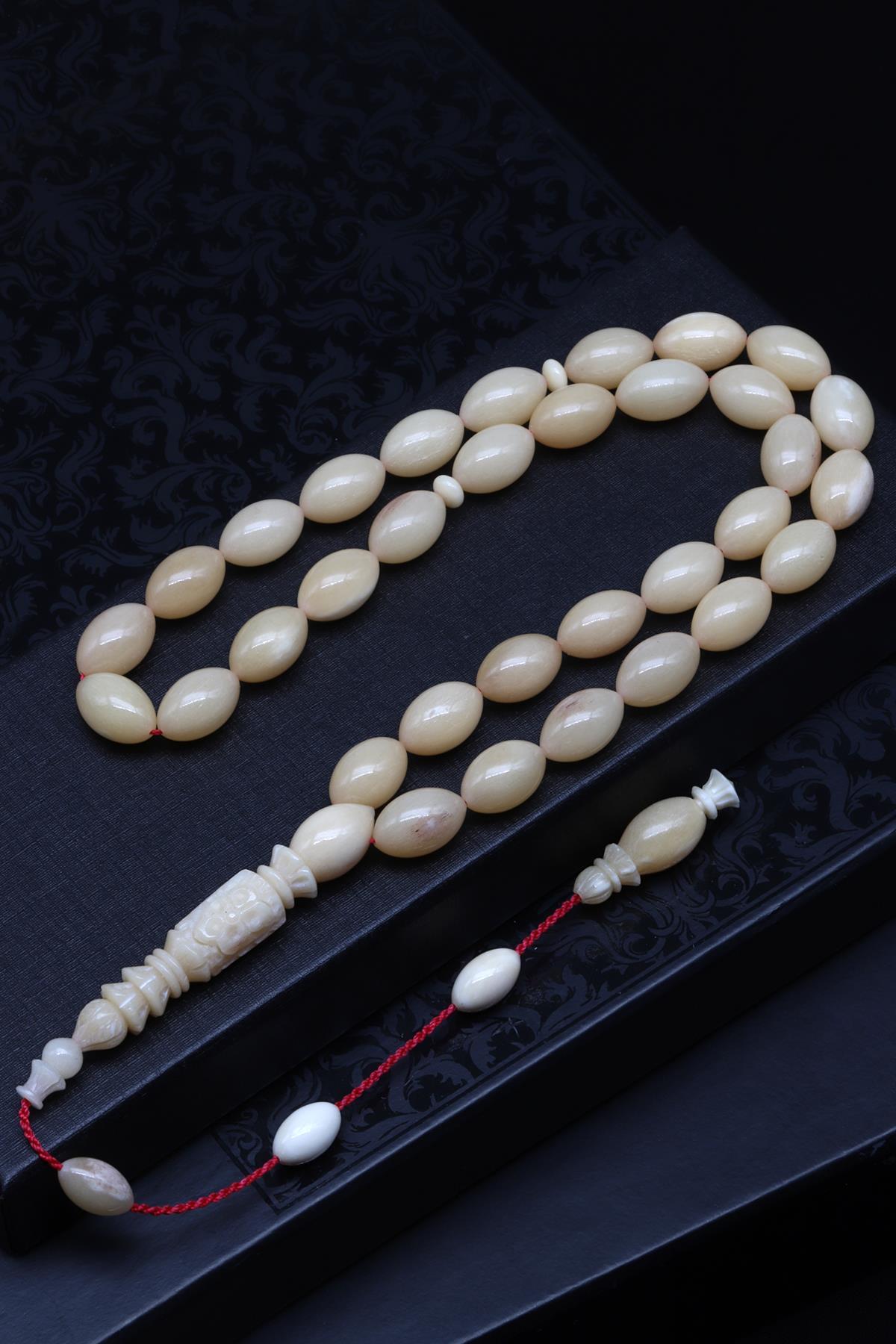 Usta İşçilikli İmame Oymalı Kemik Tesbih 9 x 14 mm Arpa Kesim